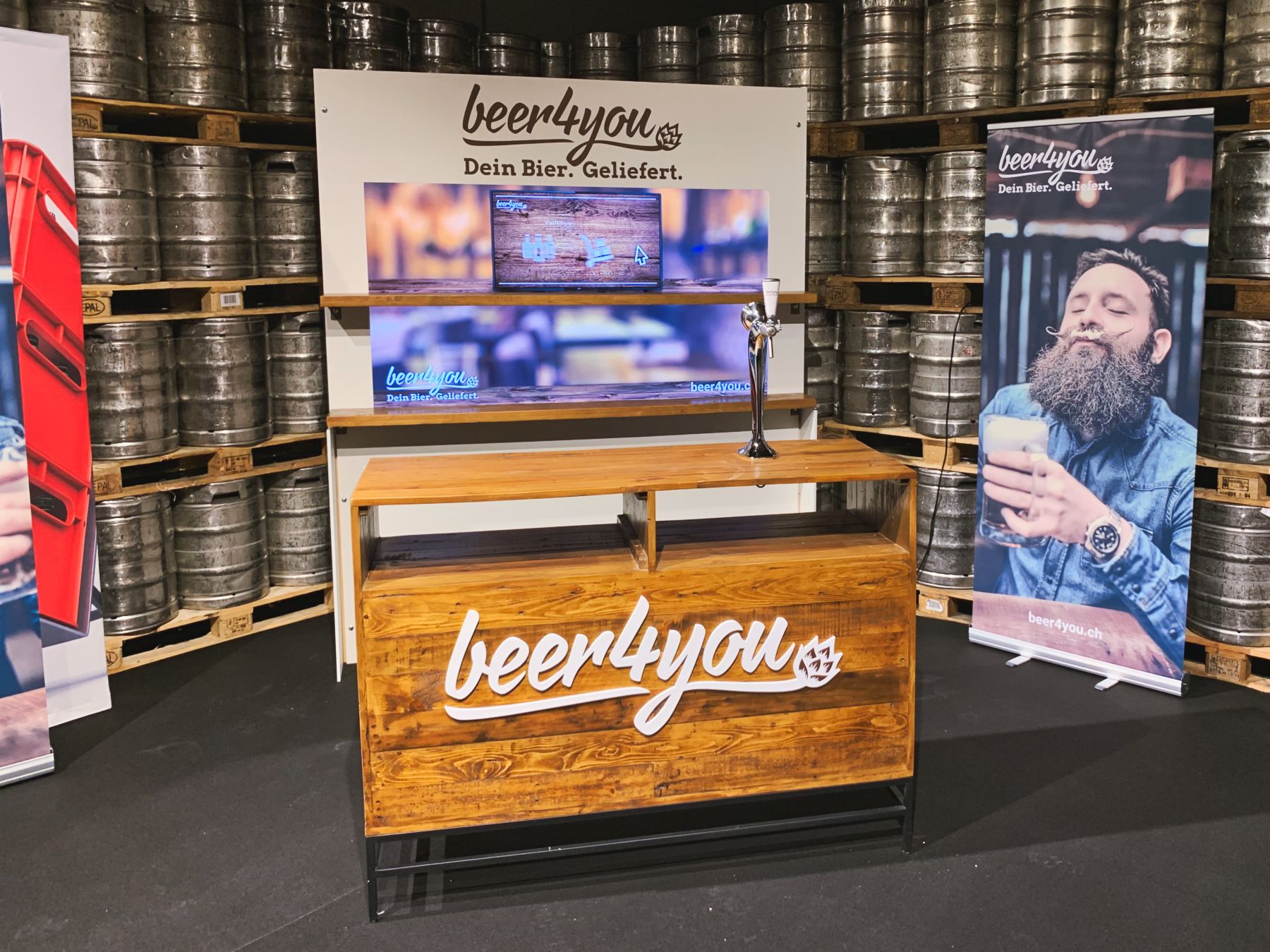 Am Tag des Schweizer Biers sollen die Besuchenden der Feldschlösschen-Brauerei in Rheinfelden auf witzige Art und Weise auf die Digitalmarke beer4you aufmerksam gemacht werden. Ziel war es Story, Spass und Aufmerksamkeit gekonnt zu vereinen und den Auftritt aus einem Guss zu erarbeiten. Bar und Back-Bar stammt in Design und Bau aus dem Hause made.