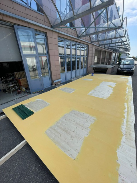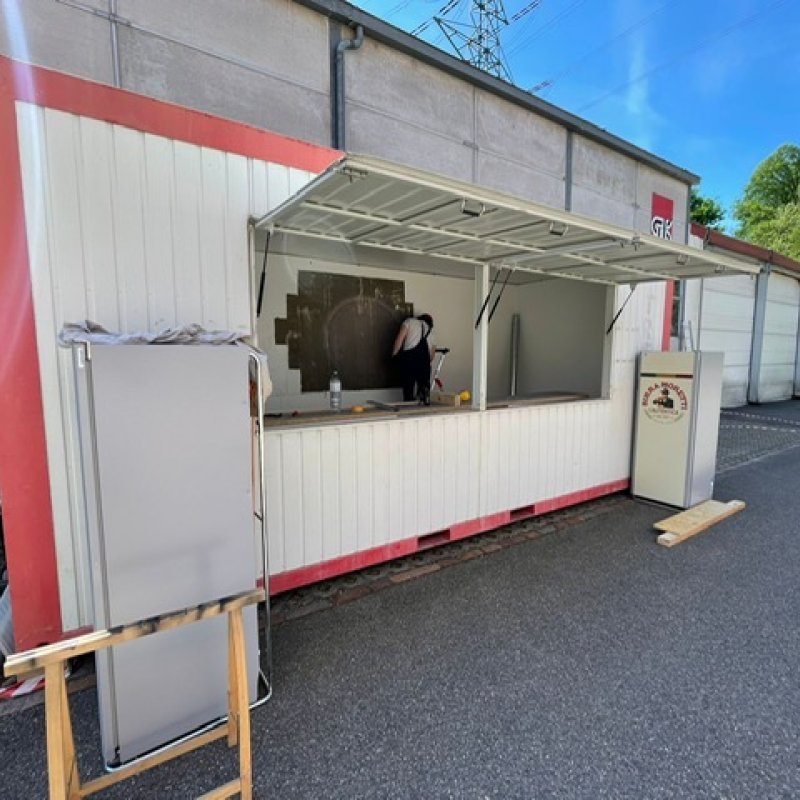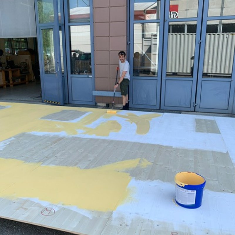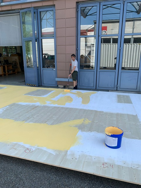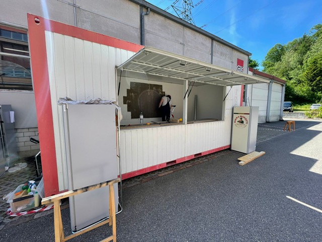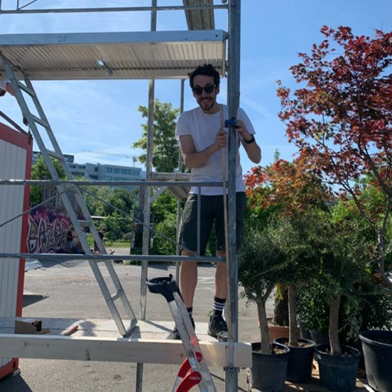 Im Aussenlager in Busslingen machten nicht nur Adriano-Celentano-Lieder aus dem Lautsprecher Überstunden, auch das made-Team, welches gleichzeitig den Innenausbau des Containers, die gesamte Fassade und die Piazza mit Boccia-Bahn und Sitzgelegenheiten plante, konzipierte und zum Teil bauten.