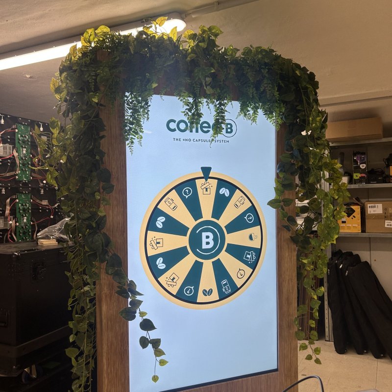 Das digitale Glücksrad wurde als interaktive Aktivierung in den Coffee B Auftritt am ESC 2025 integriert.