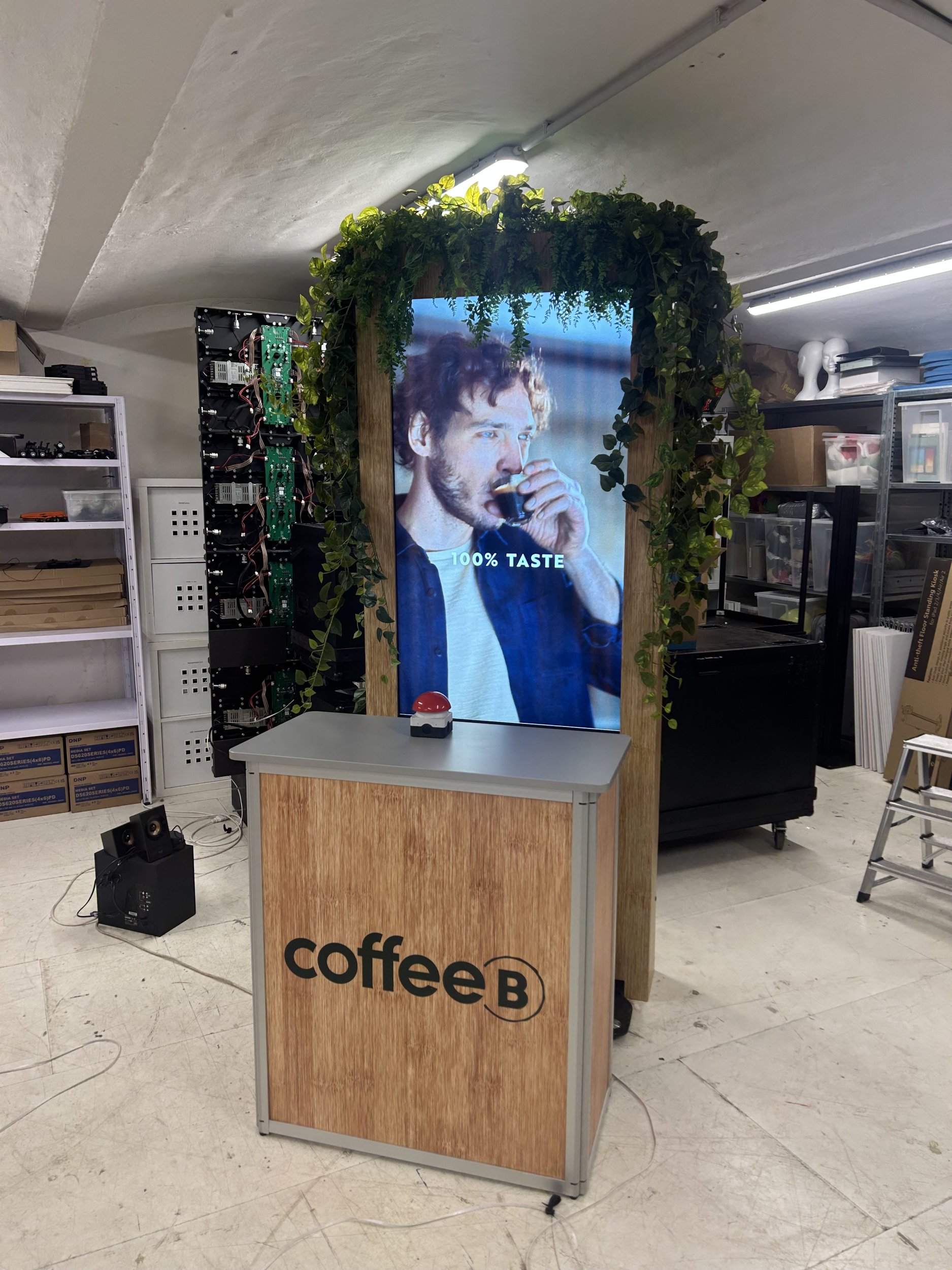 Die Give-Aways und deren thematische Einbindung sind bereits definiert und bilden die Basis der Umsetzung. Die visuelle Gestaltung unterstützt den Gesamtauftritt und funktioniert gleichzeitig als Eye-Catcher. Elemente wie Pflanzen, CoffeeBalls sowie Kapsel-Waste wurden inhaltlich und visuell in die Inszenierung aufgenommen.