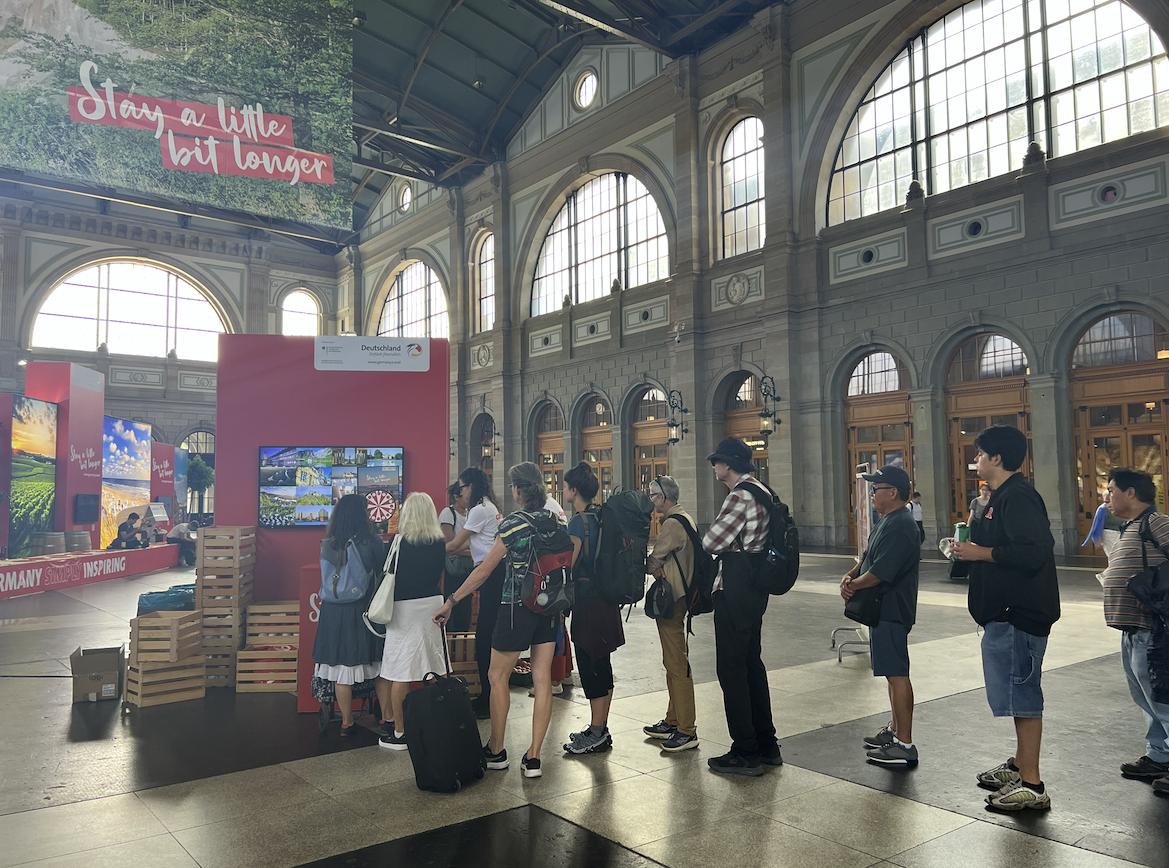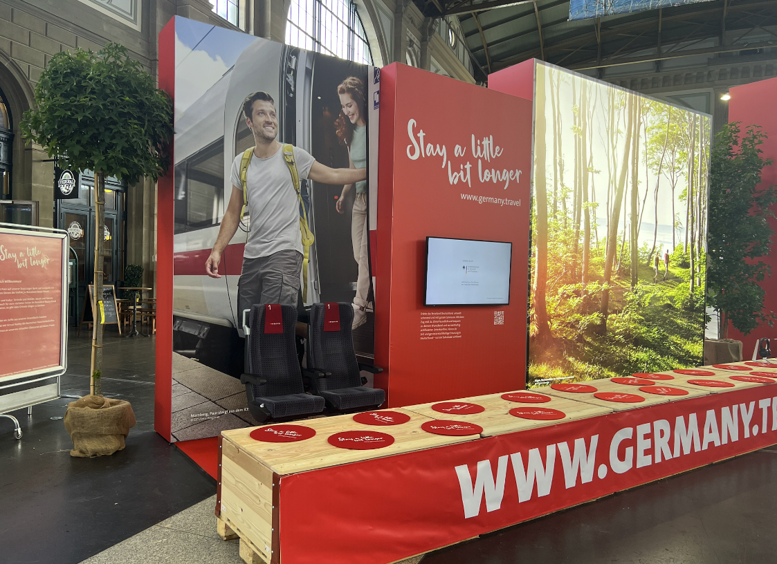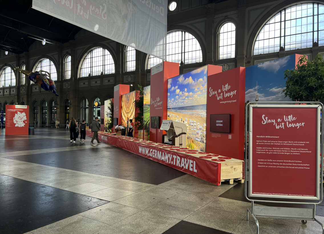 Mit «Stay a little bit longer» lud die Deutsche Zentrale für Tourismus zur längsten Bank im Hauptbahnhof Zürich.