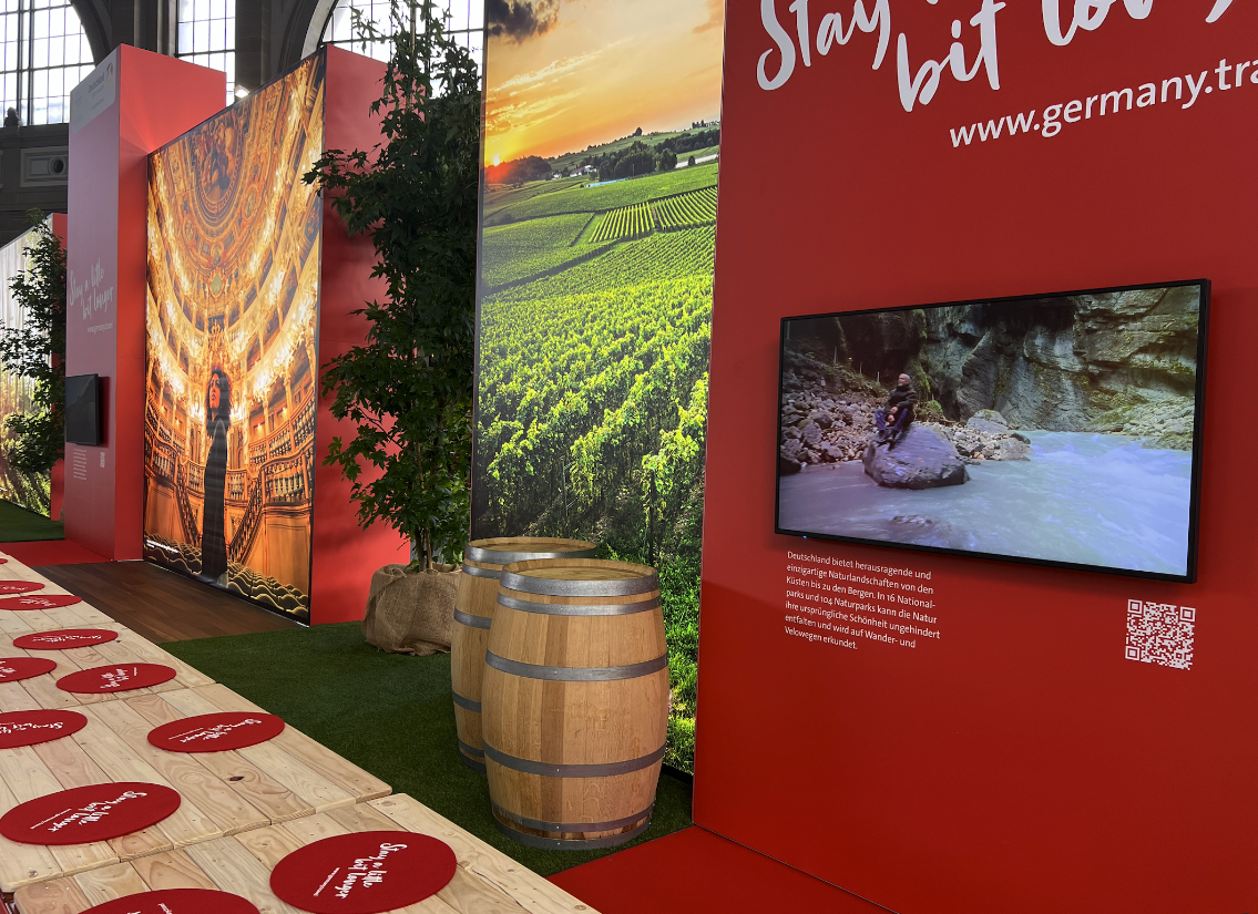 Als thematischer Leitfaden diente unser 5-Sinne-Framework, das Besuchende auf eine sinnliche Entdeckungsreise mitnahm – olfaktorisch, taktil und akustisch. Um die Vielfalt des Reiselandes Deutschland erlebbar zu machen, setzten wir nicht nur auf eindrucksvolle Bilder der Regionen.