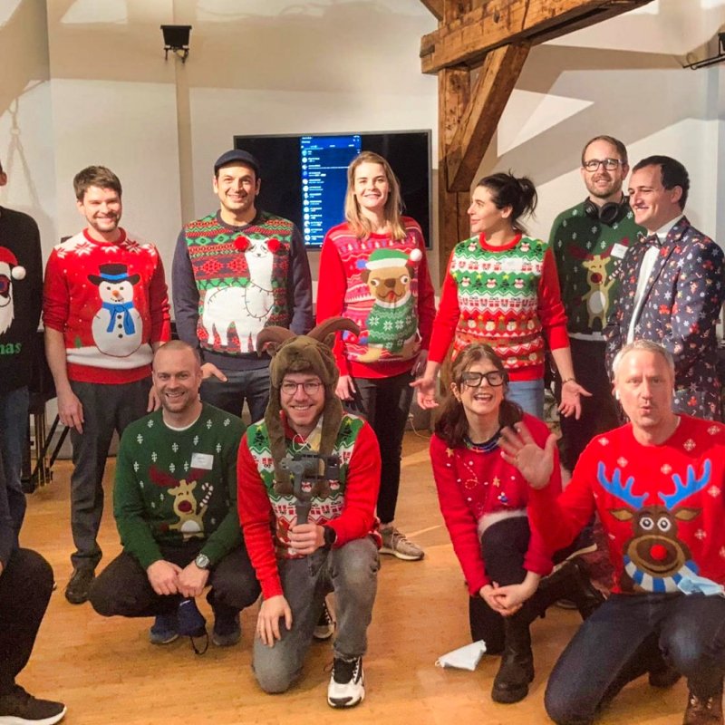 - Speeches aus der Chefetage in ugly sweaters und unserer Lametta-Christmas-Secretary (Chat-Betreuung).