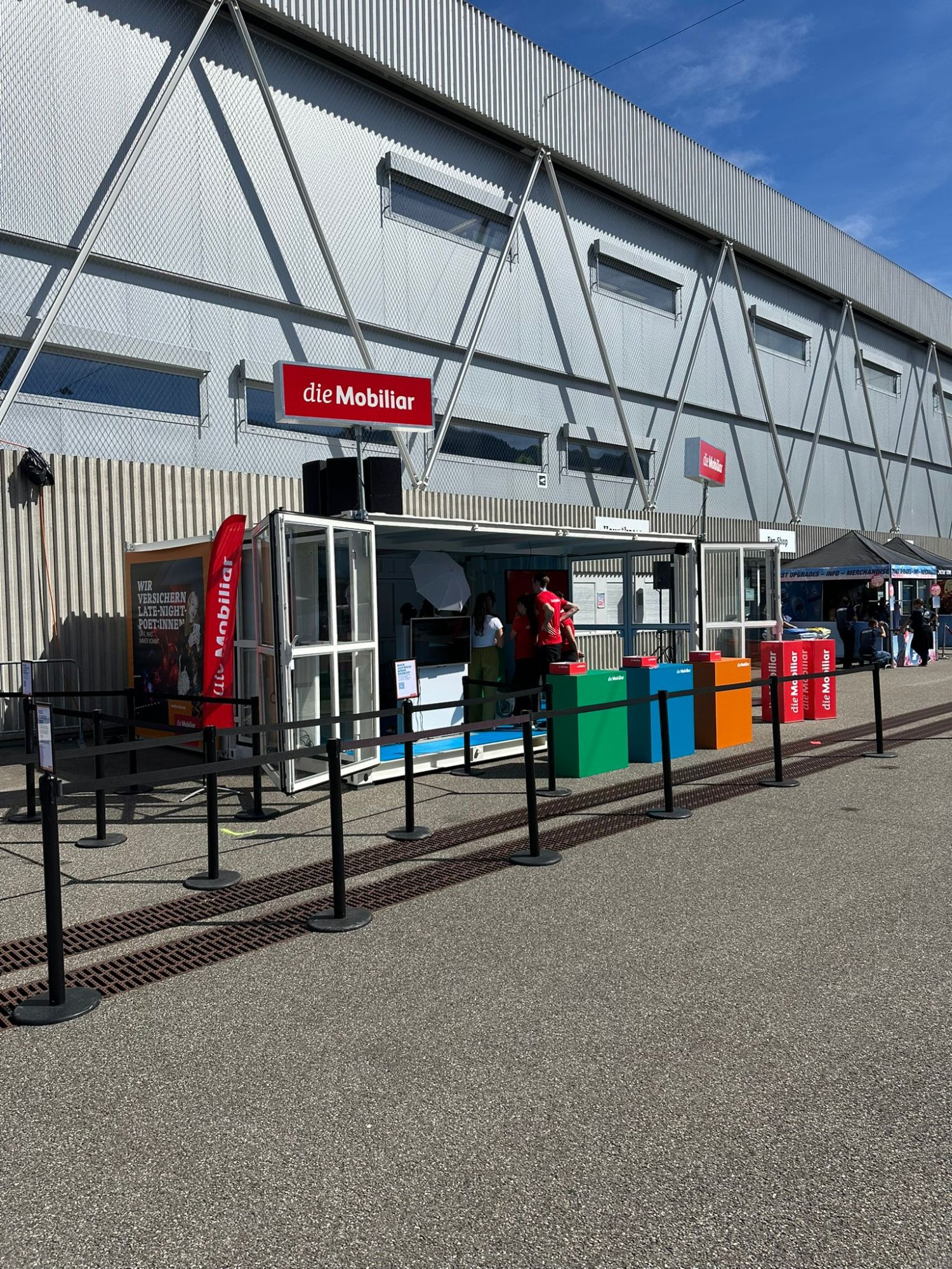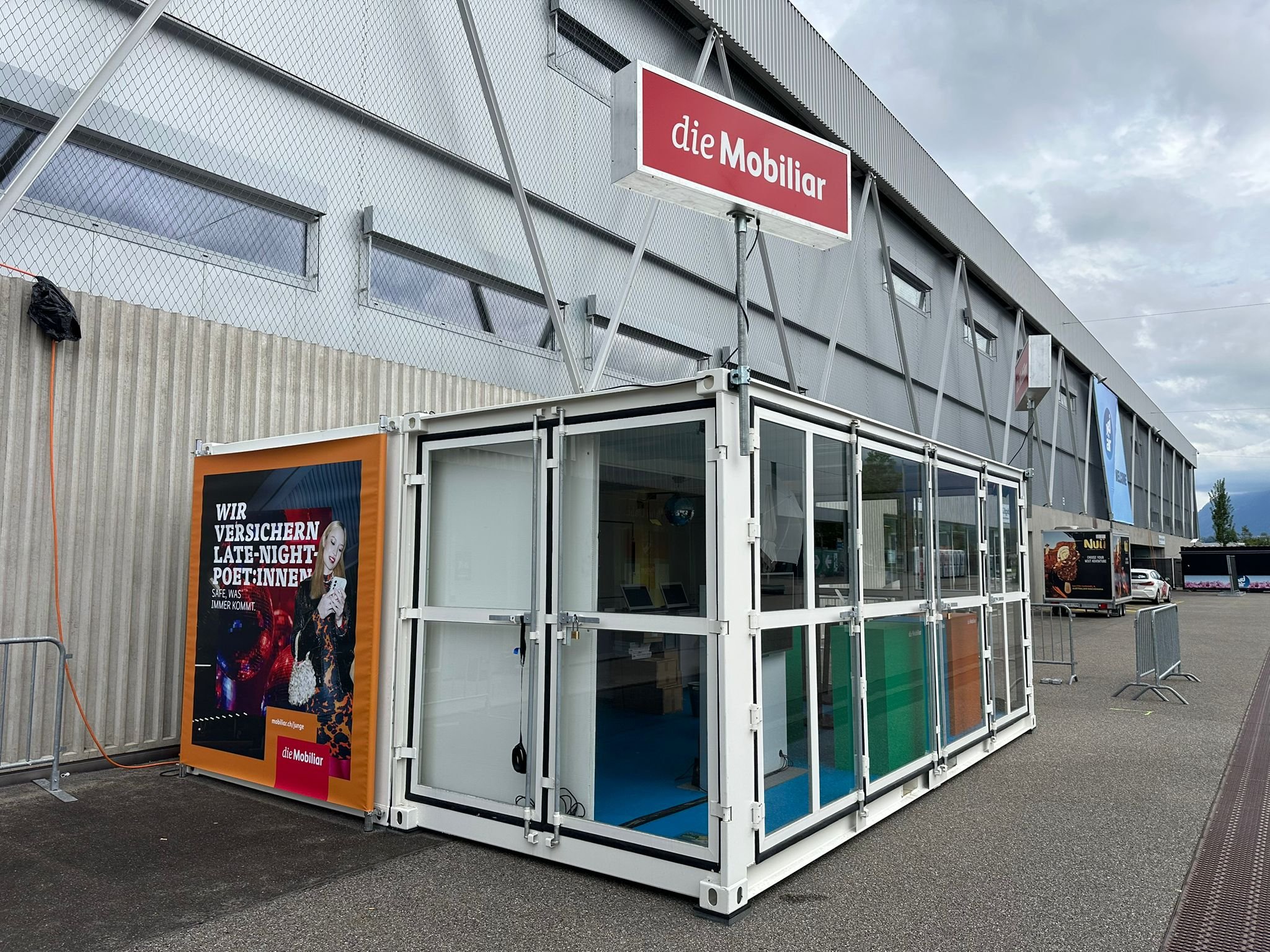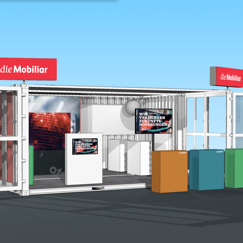 Bei Energy Air in der Stockhorn Arena Thun präsentierte sich die Mobiliar mit einem Container-Auftritt. Dieser bietet eine ideale Fläche für Gamification-Erlebnisse. Dank der flexiblen Lösung kann die Aktivierung nun wetterunabhängig auch im Aussenbereich stattfinden. Die Container erscheinen dabei im passenden Mobiliar-Branding und sorgen für einen starken Auftritt.