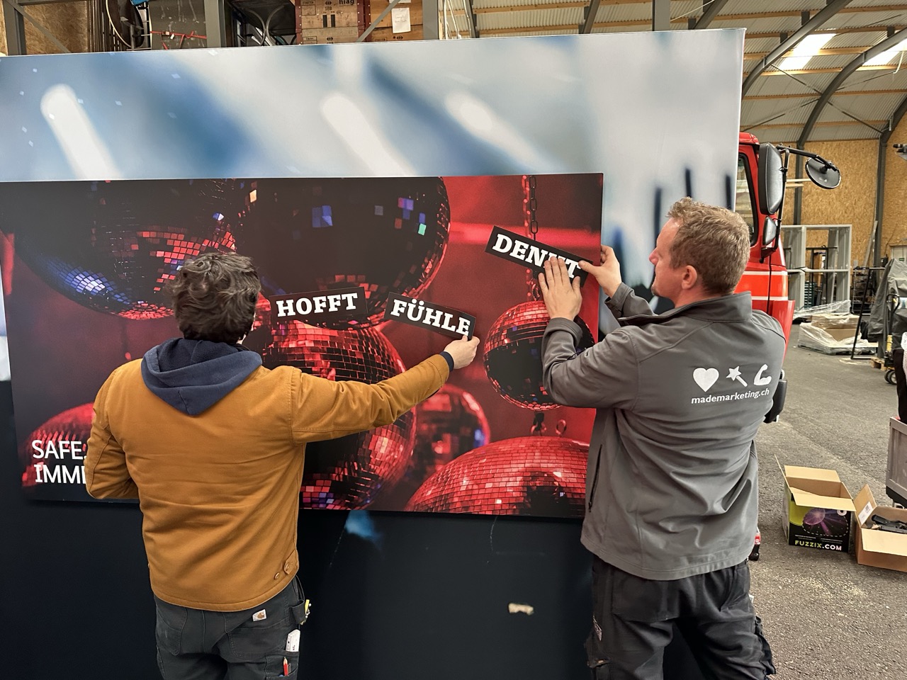 Zentrales Element ist die beliebte Fotoaktivierung, die dieses Jahr um ein interaktives Game erweitert wurde: In Anlehnung an die bekannte «Kühlschrankpoesie» stellen die Besuchenden mit Magnetwörtern innerhalb von 60 Sekunden eine eigene Grussbotschaft zusammen – direkt auf der Fotowand. Danach wird das Foto ausgelöst und mit der persönlichen Message als Erinnerung mitgegeben.