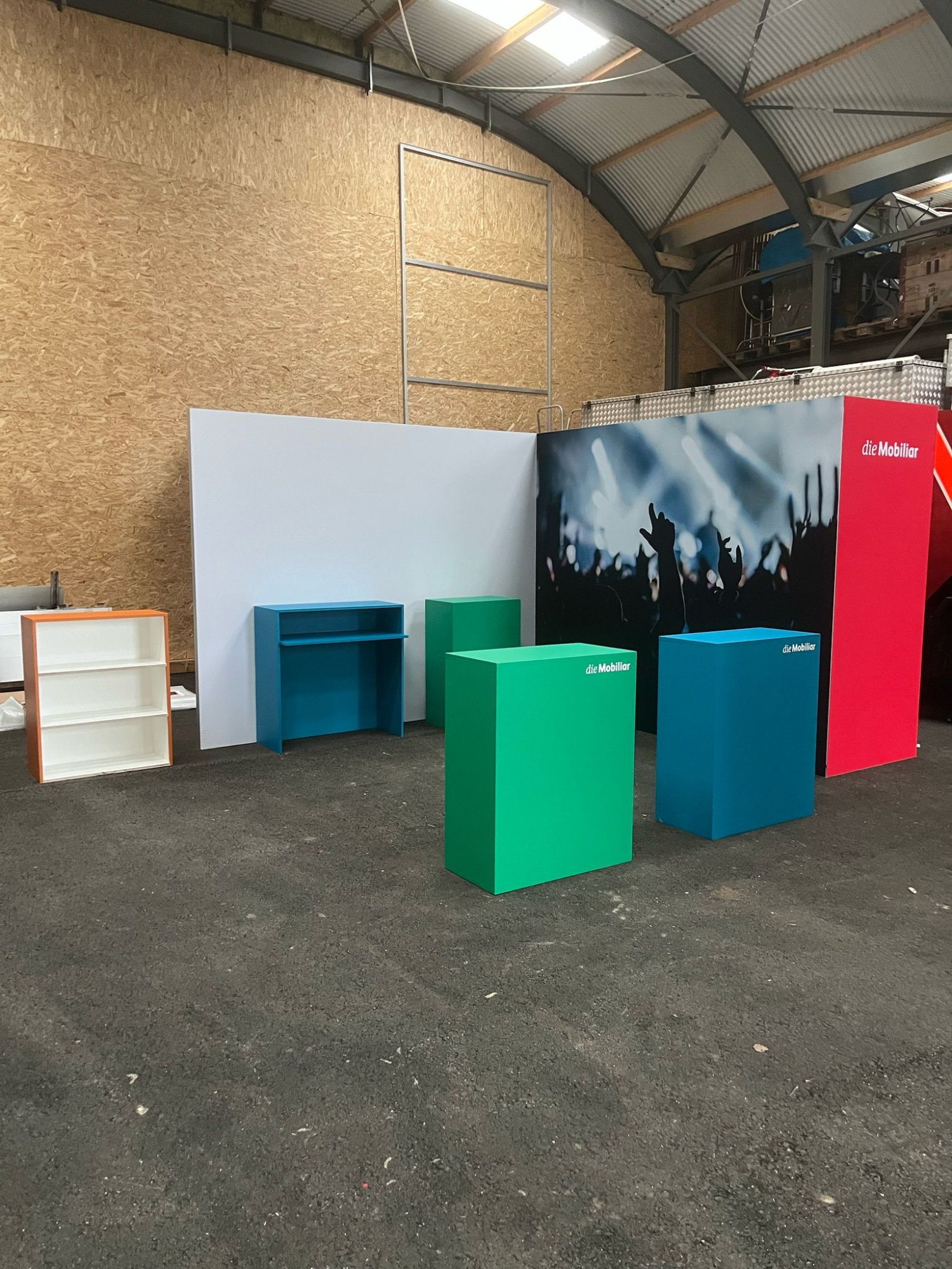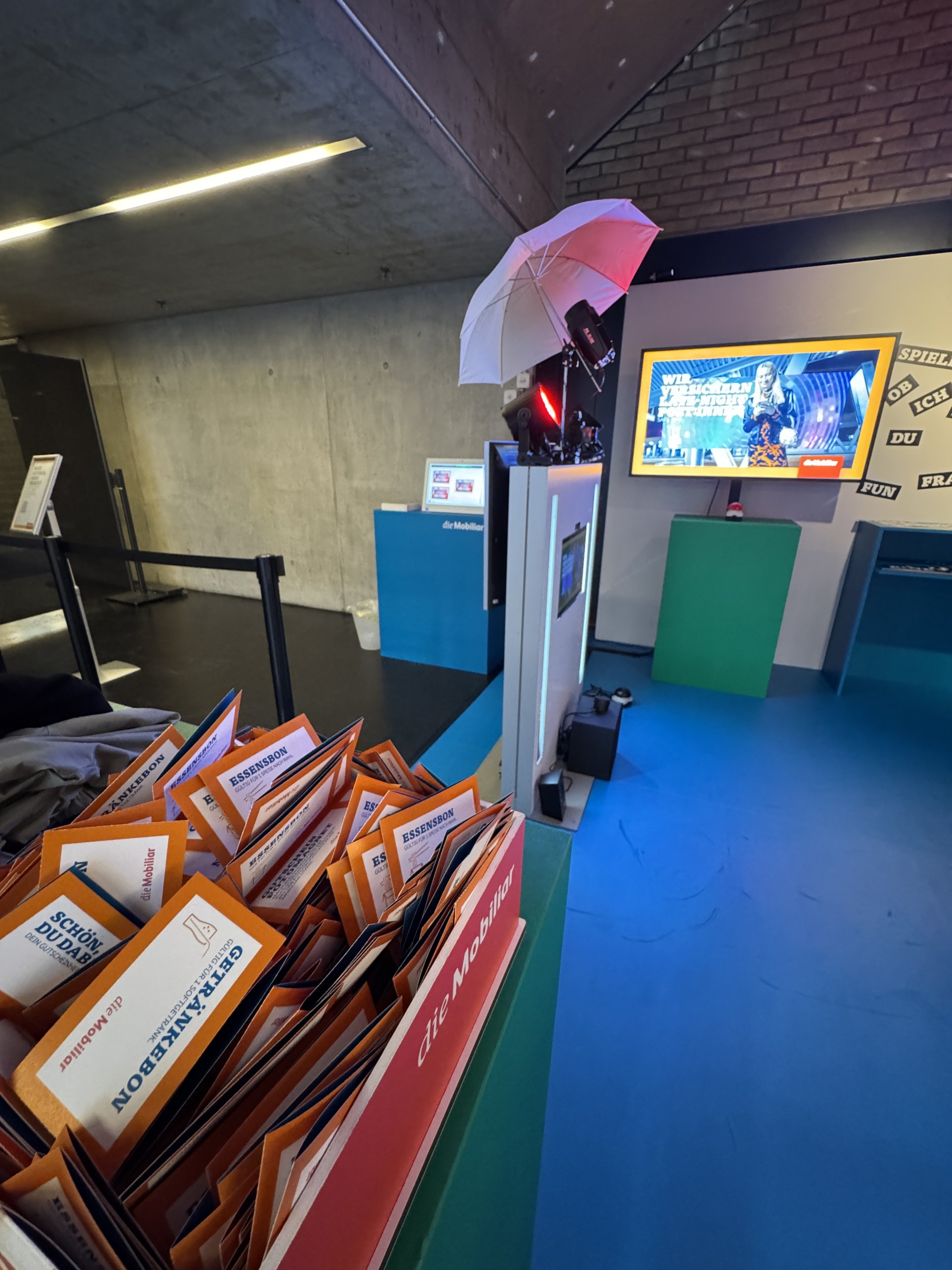 Für das Mobiliar-Projekt konnte unser Krea-, Game-Design- und Bau-Team aus dem Vollen schöpfen. Das Standdesign wurde speziell auf die herausfordernden Gegebenheiten im Hallenstadion Zürich zugeschnitten – akribisch im CAD geplant und mit passgenauen Modulen umgesetzt. Auch das Mobiliar stammt aus unserer hauseigenen Werkstatt: individuell gefertigt, hochwertig verarbeitet und farblich exakt auf die frischen Jugendfarben der Mobiliar abgestimmt.