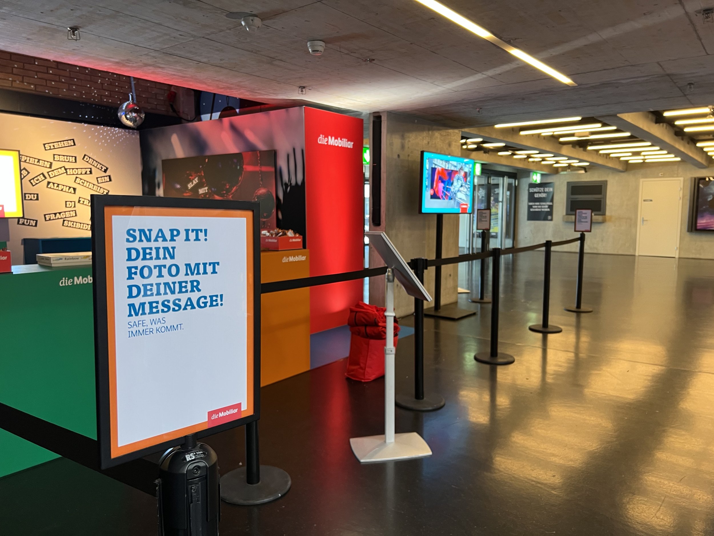 Der Claim «Safe, was immer kommt.» diente als inhaltlicher Anker und wurde als emotionale Essenz herausgepickt und erlebbar gemacht. So entsteht ein direkter Link zur übergeordneten Markenbotschaft – neu interpretiert für den physischen Raum. Die Aktivierung schliesst somit nahtlos an die Kampagne an und verlängert sie authentisch in den Live-Bereich.