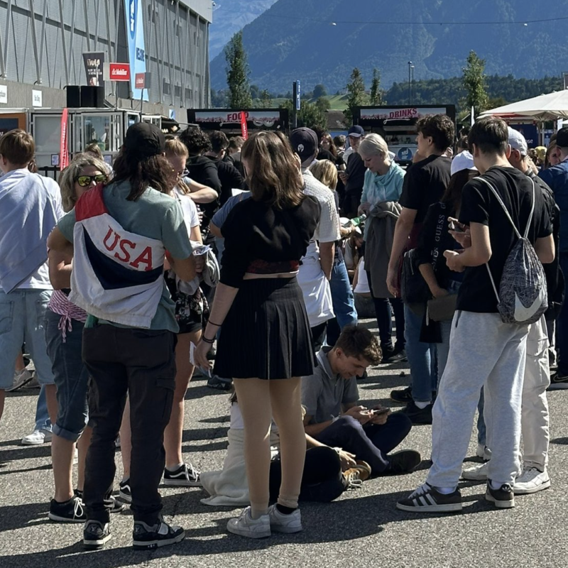 Für die Aktivierung entwickelten wir ein spielerisches Format, das Tempo, Kreativität und Humor vereint – perfekt zugeschnitten auf die junge Zielgruppe. Die Aufgabe: Innerhalb von 60 Sekunden coole Sätze mit vorgegebenen Jugendwörtern bilden. Gemeinsam mit Gen Z-Expert:innen der Mobiliar entstand ein eigens kuratierter Wörterkoffer mit rund 80 Begriffen – von Aura bis Cringe.