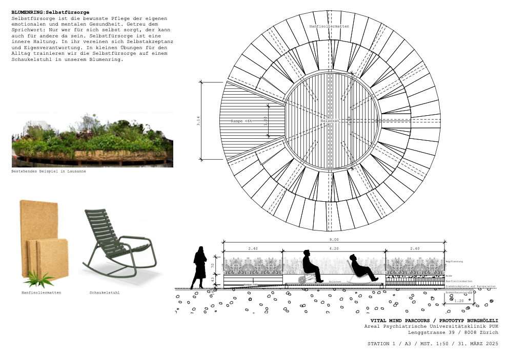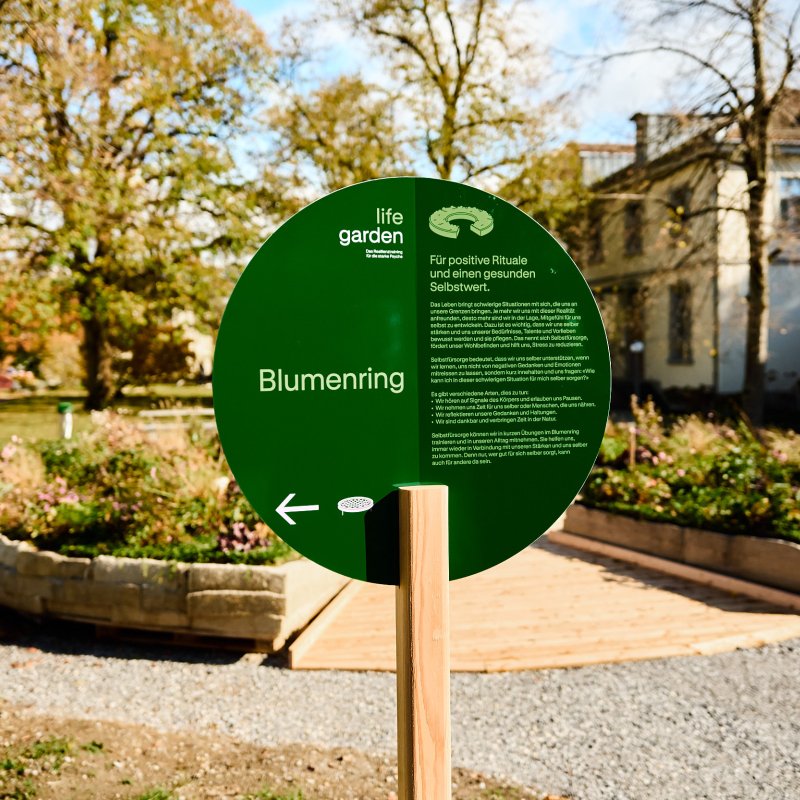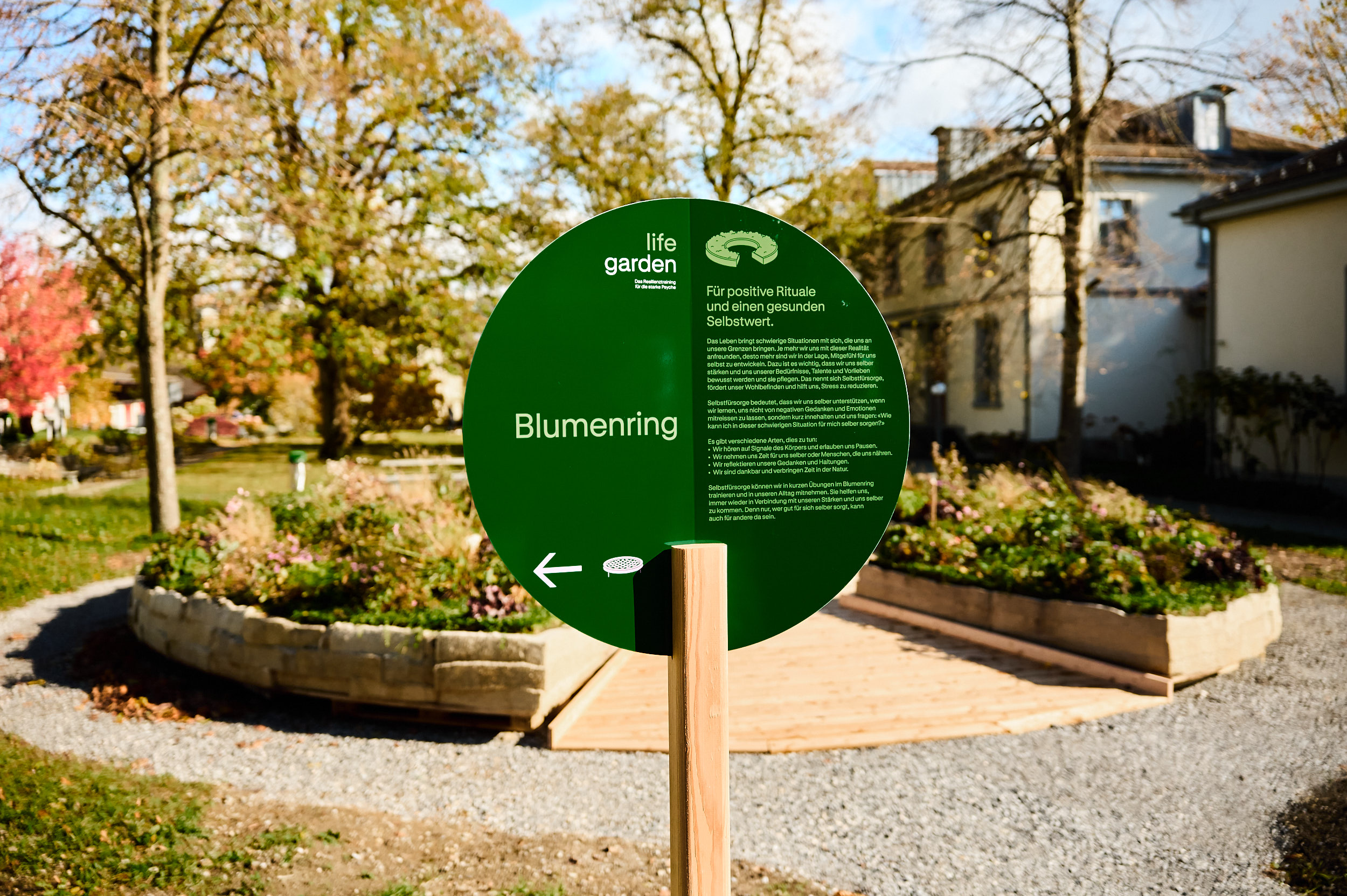 Der Lifegarden ist ein Outdoor-Parcours für Resilienztraining in der Nähe der Psychiatrische Universitätsklinik Zürich. Inmitten von Natur steht hier ein frei zugänglicher Lern- und Erlebnisraum, der Besuchende dazu befähigt, ihre psychische Widerstandskraft aktiv zu stärken. Wir durften für dieses Projekt den «Blumenring» realisieren – ein Modul für positive Rituale und einen gesunden Selbstwert.
