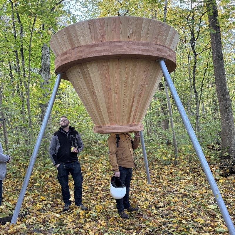 Verarbeitet wurden robuste, nachhaltige Materialien wie Hanf-Isoliermatten, Siebdruckplatten und Europaletten. Mit viel Engagement war unser Team einen ganzen Tag vor Ort im Einsatz.