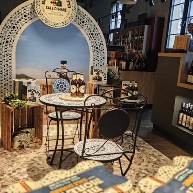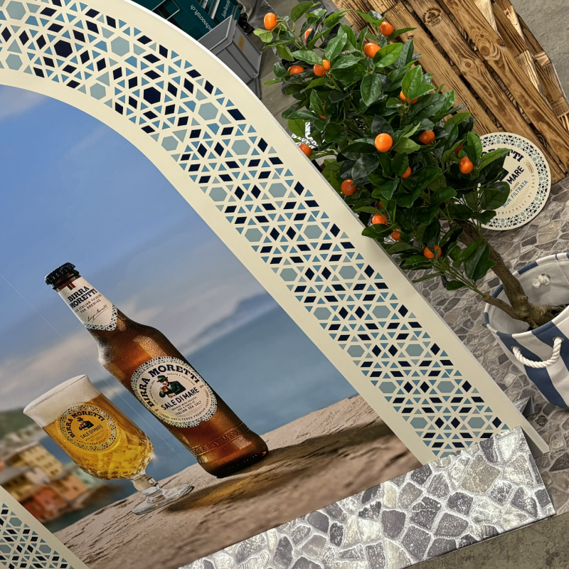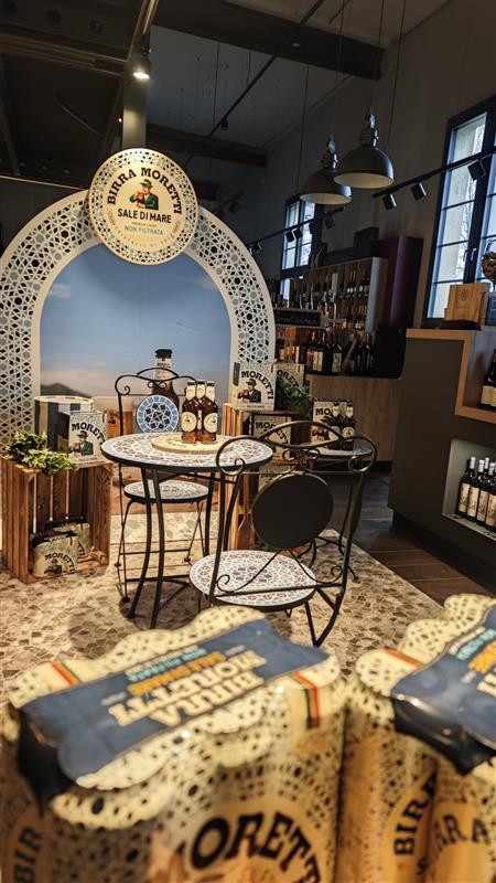 Ein erfrischender POS Corner für Sale di Mare, das neue Bier von Birra Moretti.