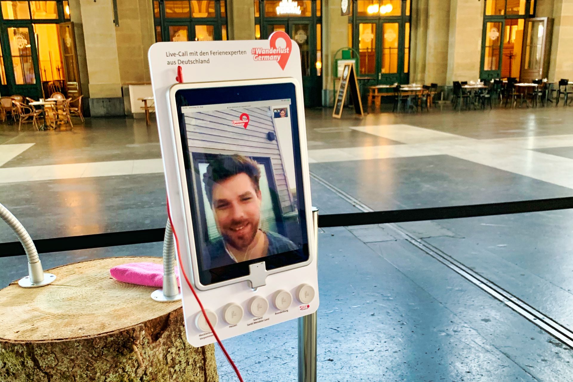 Die Idee zur Videocall-Station ist ein Corona-Produkt. Per Knopfdruck baut sich automatisch eine Verbindung zu den Feriendestinationen auf. Trotz Distanz kann so Nähe und Authentizität geschaffen werden. Die Interessierten kriegen Infos aus erster Hand und auch gleich ein freundliches kompetentes Gesicht zu sehen. Das kommt gut an.