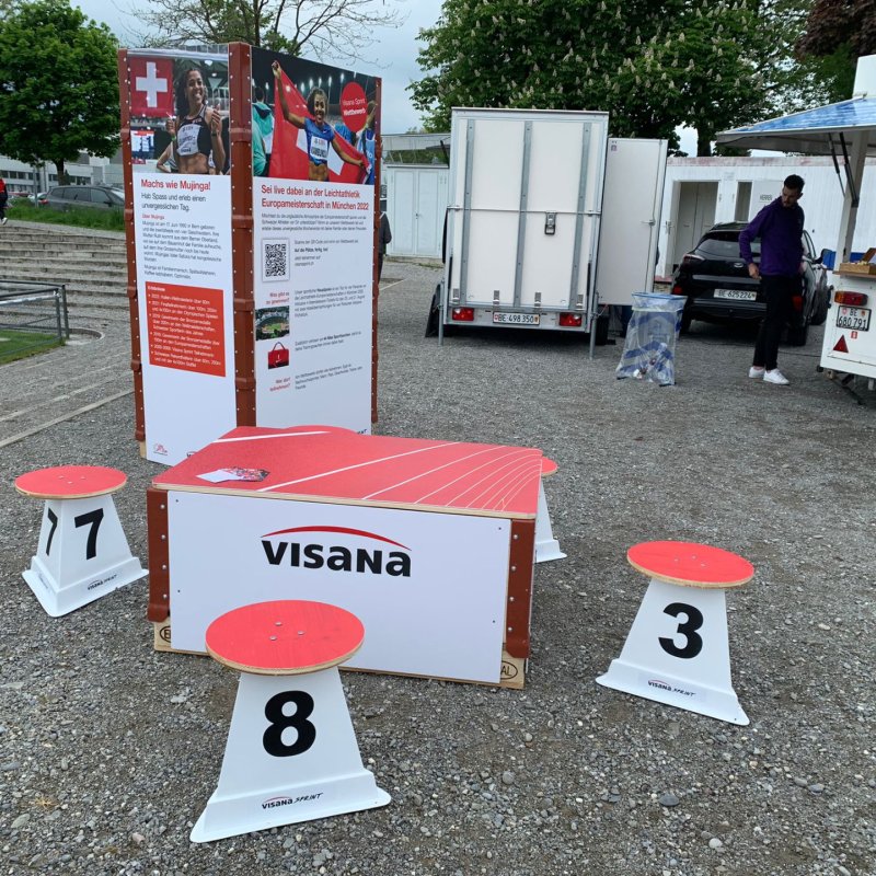 Der Auftritt der Visana als Hauptsonsor der schweizweiten Sprintnachwuchs-Rennen wurde massgeblich von den Farben Weiss und Rot dominiert. Aber auch von der starken Leistung von Sprinterin Mujinga Kambundji, welche als Botschafterin die Sprints immer wieder besuchte. Durch ein Game, das wir inhouse programmierten, konnten sich die Kids mit Mujinga auseinandersetzen, indem sie versuchten ihren Rekord über 100 Meter zu erbuzzern. Das Spiel fand bei Klein und Gross regen Anklang.