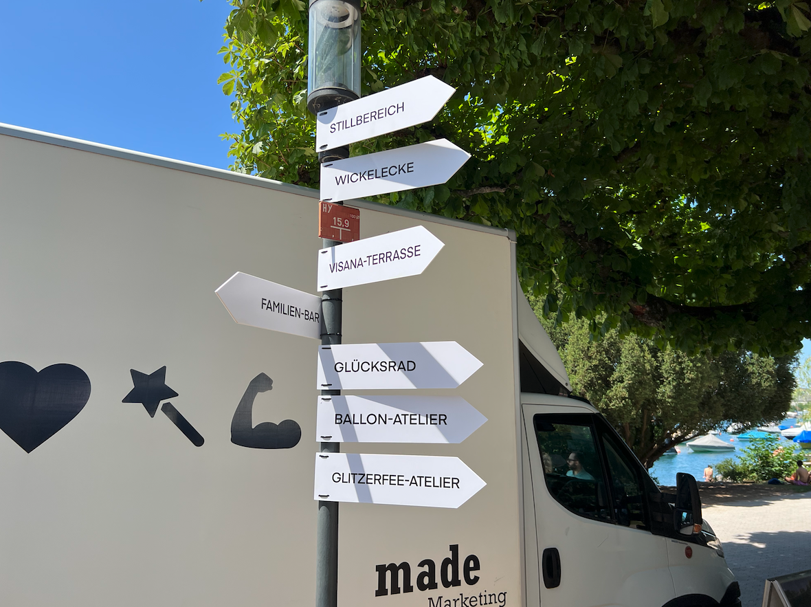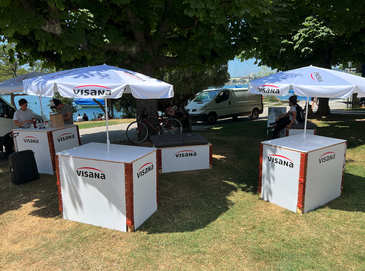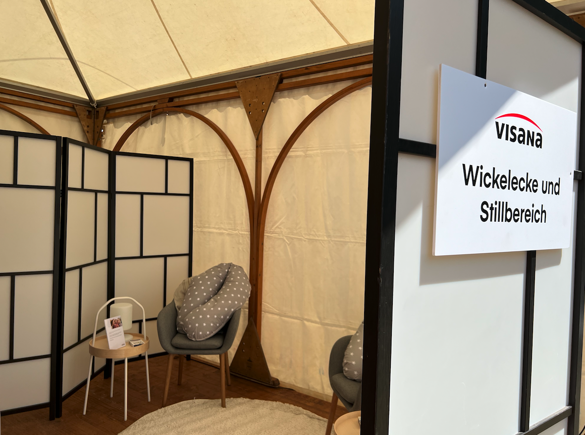 Visana wünschte sich einen familienfreundlichen und interaktiven Auftritt, welcher im Gewusel des Festes Erholungs- und Rückzugsräume bieten sollte.
