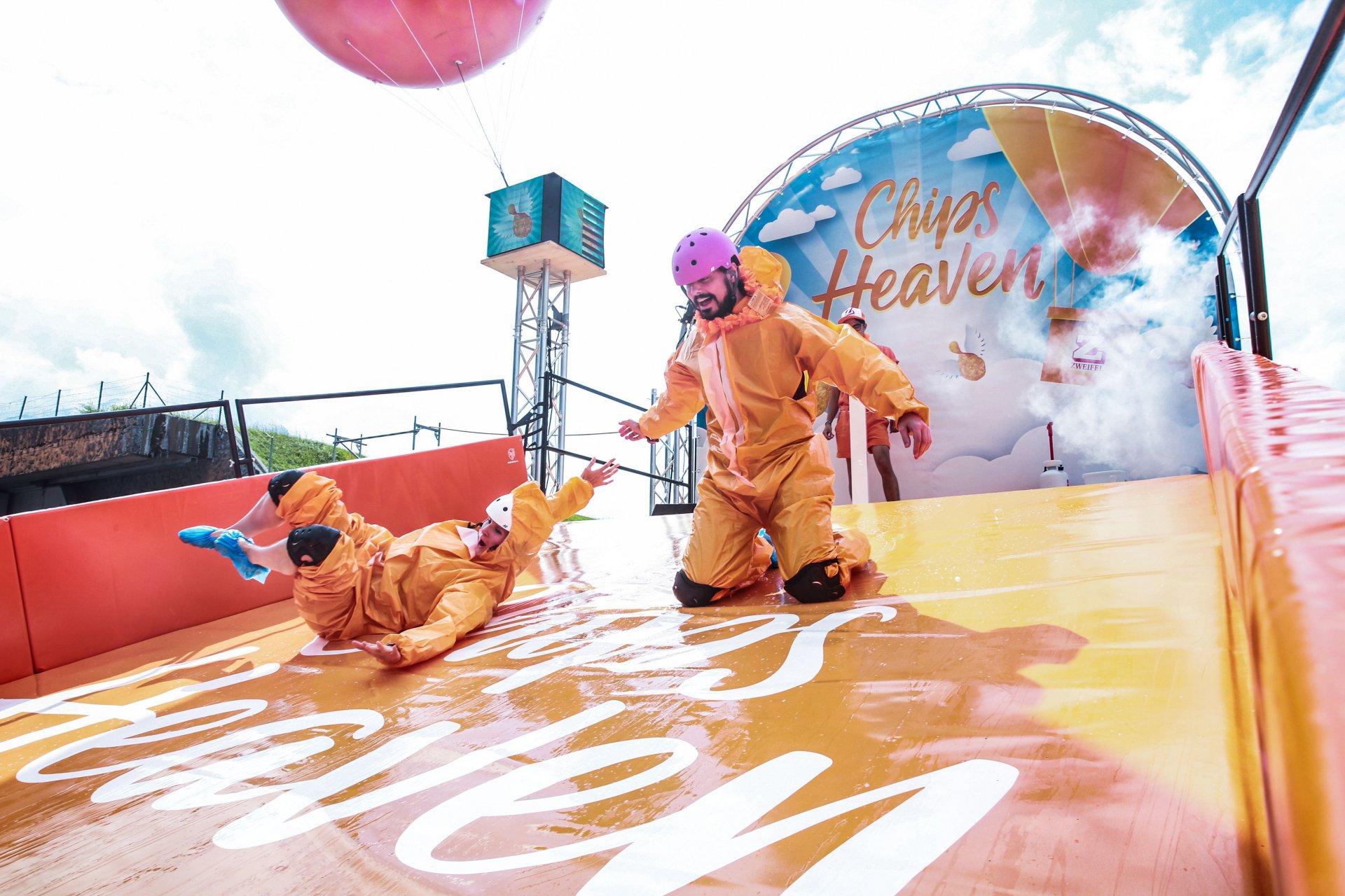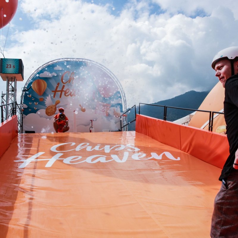 «Wir sind glücklich mit dem «Chips Heaven». Unsere Vorgaben – Challenge, Spass und Visibilität – wurden vollends erfüllt», so Adrian Müller, Leiter Live-Marketing und Sponsoring bei Zweifel. Besonders die Umsetzungsphase sei spannend und intensiv gewesen, sagt Jann Falett, Live-Marketing und Sponsoring Manager bei Zweifel, der als einer der ersten die Rampe hoch ist.