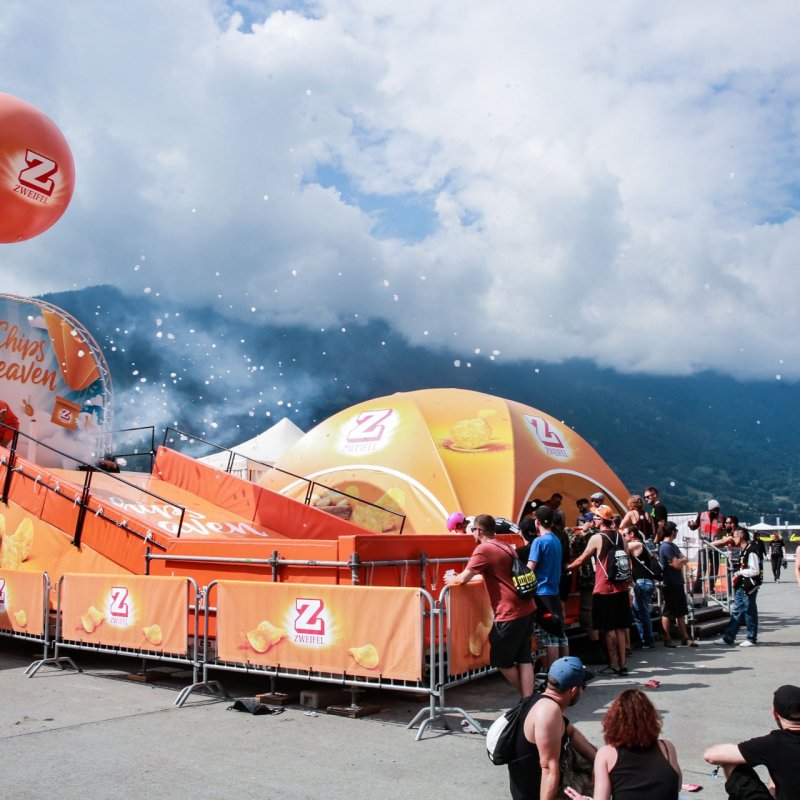 Der «Chips Heaven» kommt am Openair Greenfield, Openair Lumnezia, Heiteren Open Air und Open Air Gampel zum Einsatz. Er ist Kernelement der Zweifel-Festival-Auftritte für die nächsten drei Jahre.