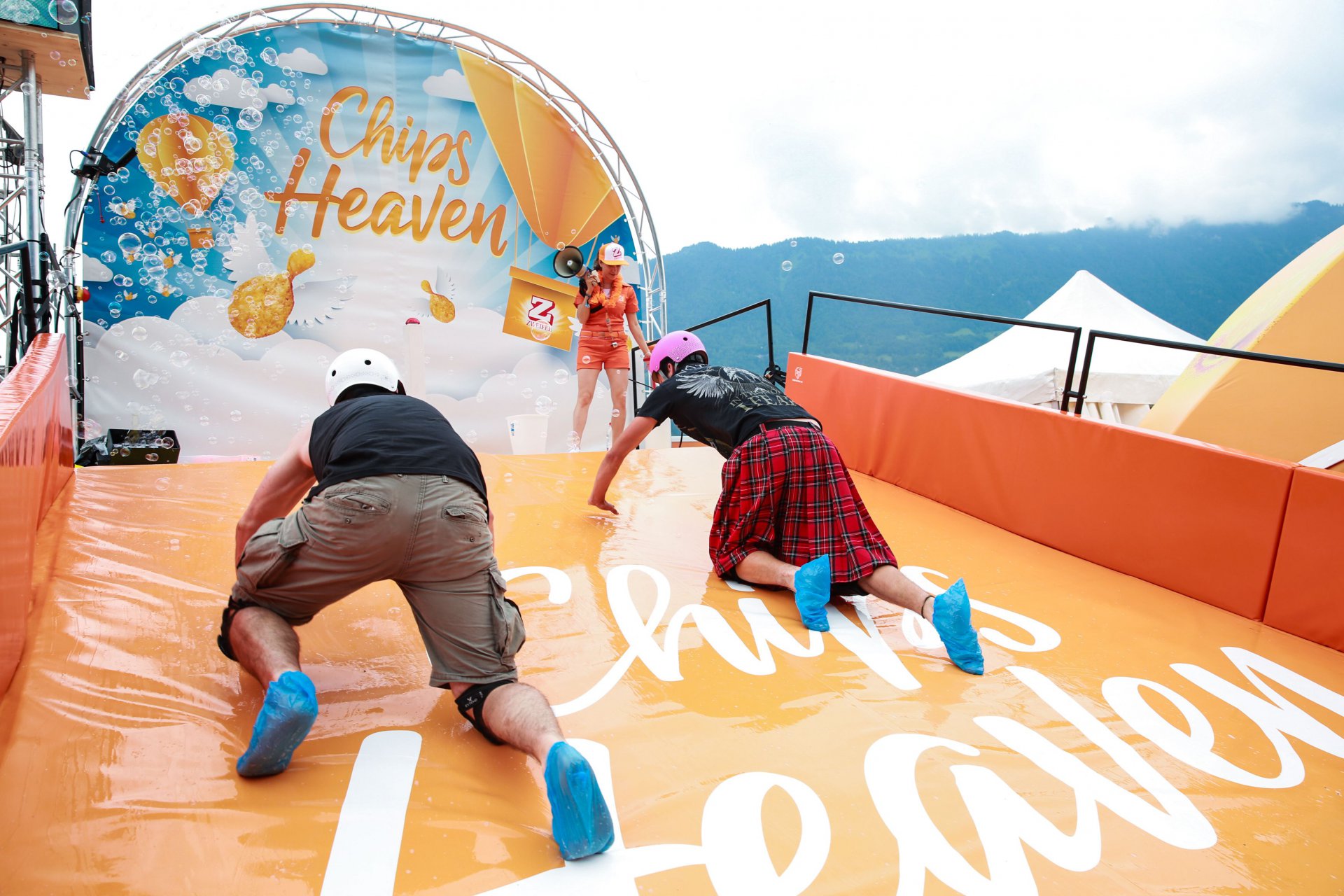 Der Chips Heaven ist der Ort, an dem jeder Festivalbesucher hin will. Der Weg dahin ist eine sechs Meter lange glatte Rampe mit 19 Grad Neigung. Wer zuschaut merkt schnell: Der himmlische Parcours hat es in sich. Die glatte Oberfläche verlangt viel Konzentration und Geschick. Es bleiben nur zwei Minuten, um den Himmel und damit den Buzzer zu erreichen. Durch die rutschige Unterlage werden Zuschauer und Teilnehmer gleichermassen unterhalten.