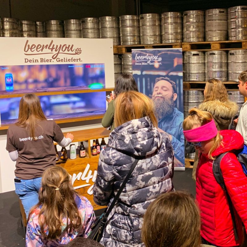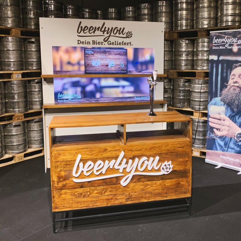 Am Tag des Schweizer Biers sollen die Besuchenden der Feldschlösschen-Brauerei in Rheinfelden auf witzige Art und Weise auf die Digitalmarke beer4you aufmerksam gemacht werden. Ziel war es Story, Spass und Aufmerksamkeit gekonnt zu vereinen und den Auftritt aus einem Guss zu erarbeiten. Bar und Back-Bar stammt in Design und Bau aus dem Hause made.