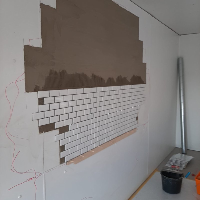 Nach dem Innenausbau des Containers folgte der Schwertransport zur Brache, da der Zusammenbau und die Fassadenverkleidung nur vor Ort stattfinden konnten. Hier waren vor allem zwei Dinge nicht gefragt: Regen und Höhenangst.