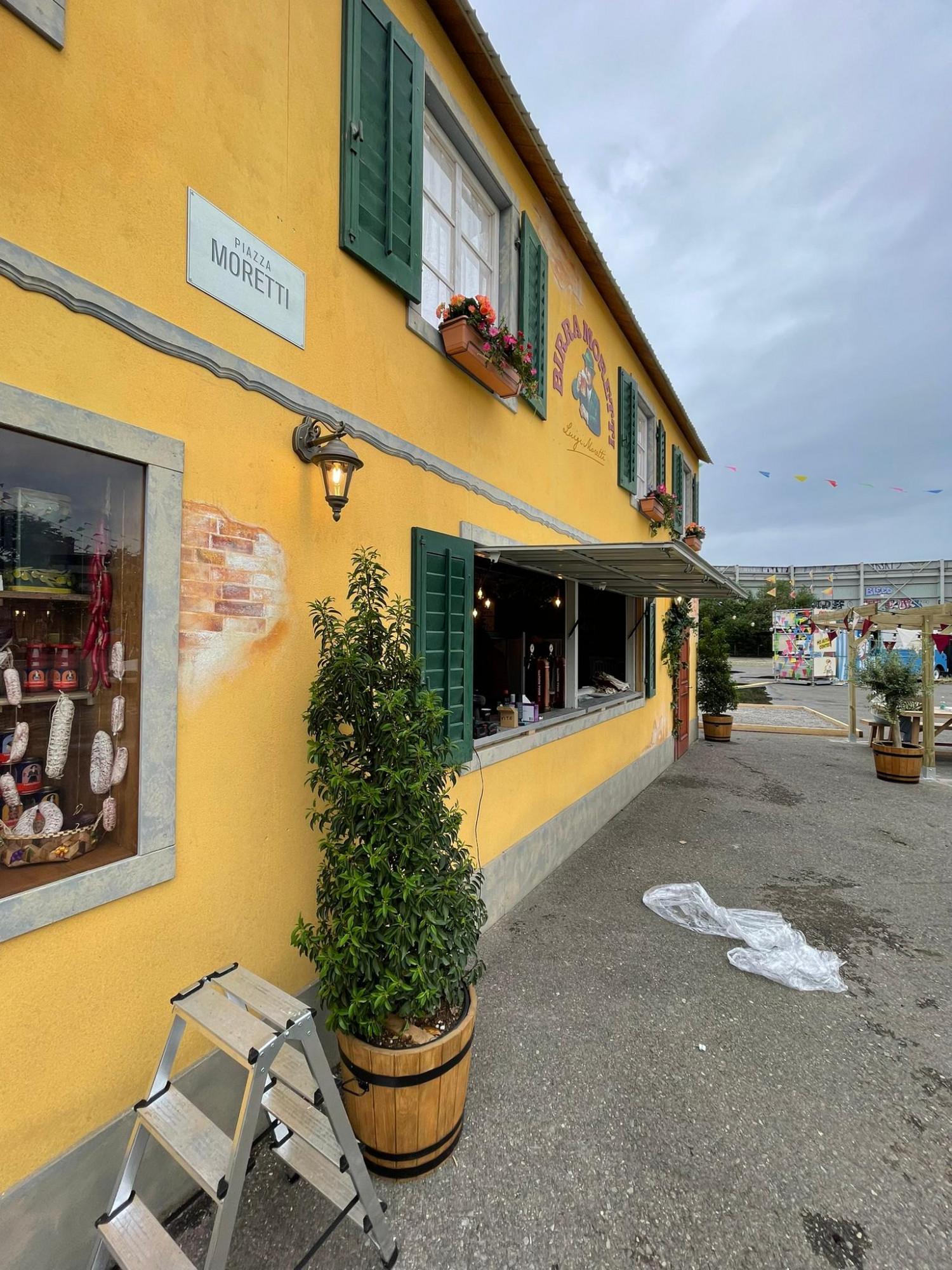 Für den Extra-Authentizitäts-Touch wurden Dekorationsgestalterin Monelle und eine Grossbildmalerin verpflichtet, welche mit Liebe zum Detail und dem Auge fürs Grosse noch mehr Leben in die Piazza und auf die Fassade einhauchten.