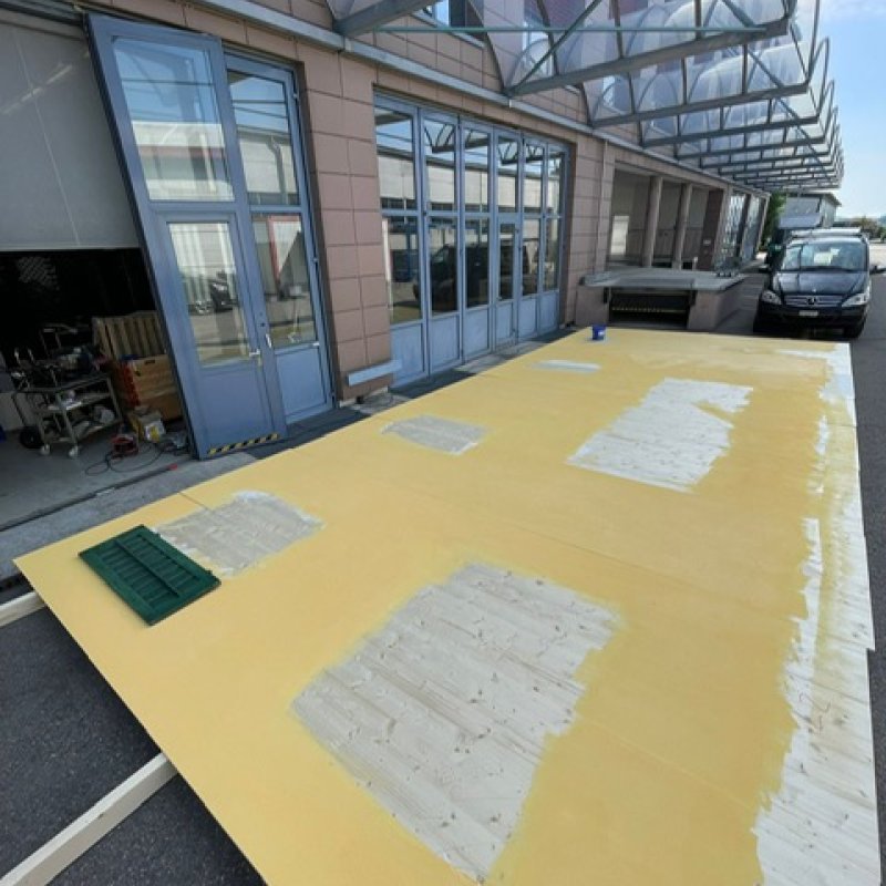 Im Aussenlager in Busslingen machten nicht nur Adriano-Celentano-Lieder aus dem Lautsprecher Überstunden, auch das made-Team, welches gleichzeitig den Innenausbau des Containers, die gesamte Fassade und die Piazza mit Boccia-Bahn und Sitzgelegenheiten plante, konzipierte und zum Teil bauten.