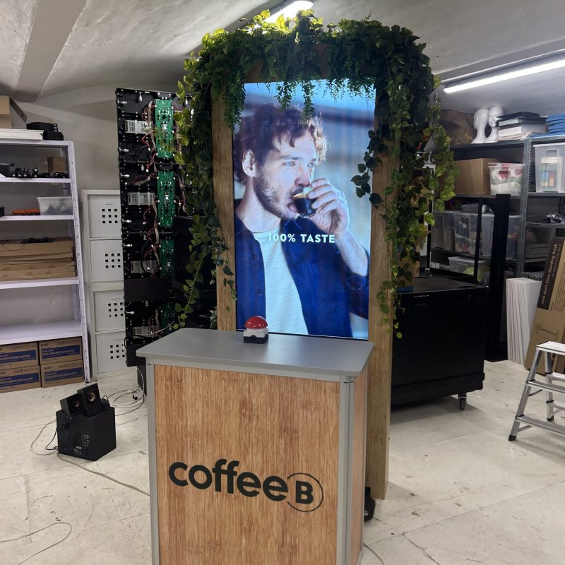 Die Give-Aways und deren thematische Einbindung sind bereits definiert und bilden die Basis der Umsetzung. Die visuelle Gestaltung unterstützt den Gesamtauftritt und funktioniert gleichzeitig als Eye-Catcher. Elemente wie Pflanzen, CoffeeBalls sowie Kapsel-Waste wurden inhaltlich und visuell in die Inszenierung aufgenommen.