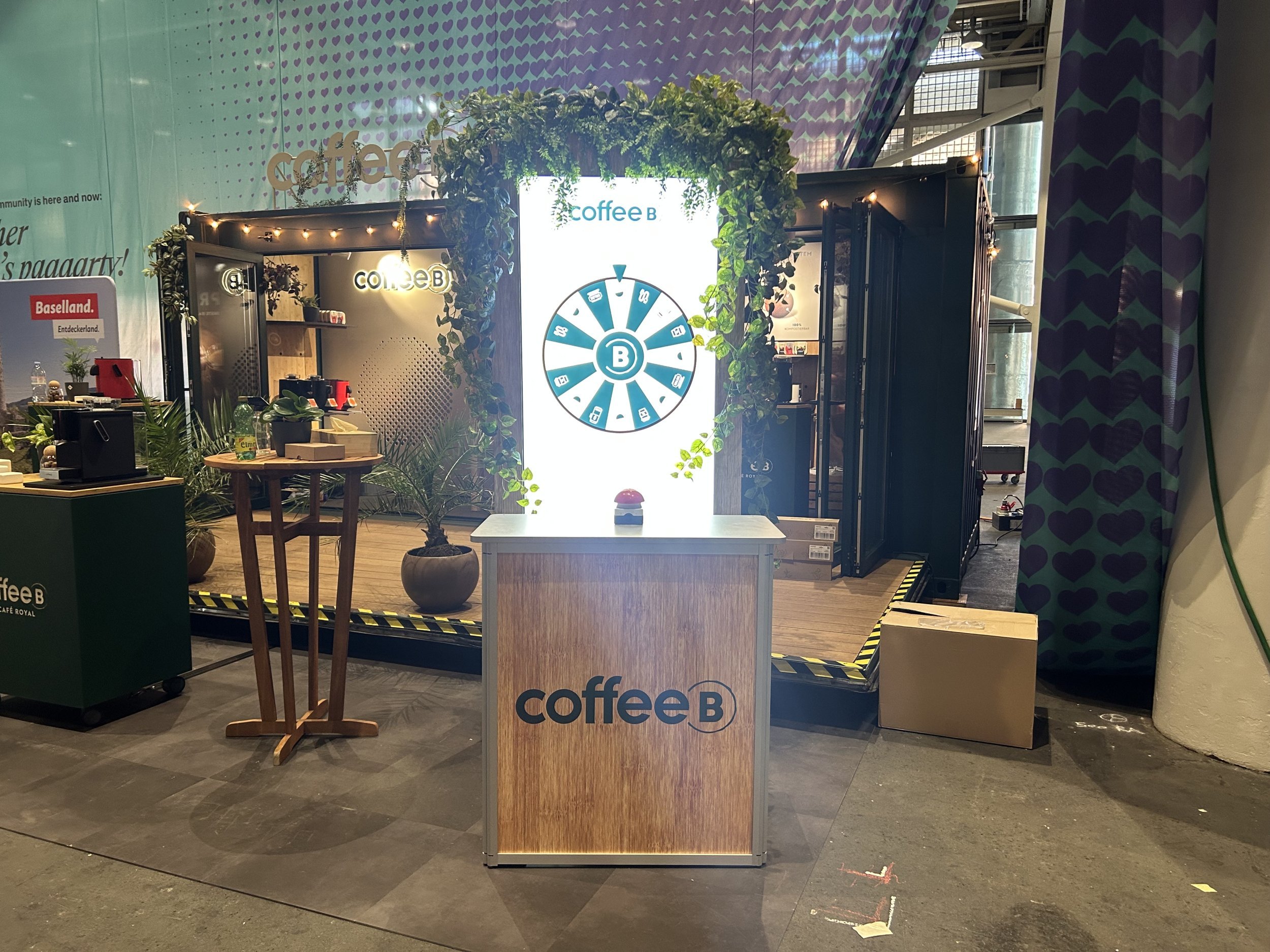 Das digitale Glücksrad wurde als interaktive Aktivierung in den Coffee B Auftritt am ESC 2025 integriert.