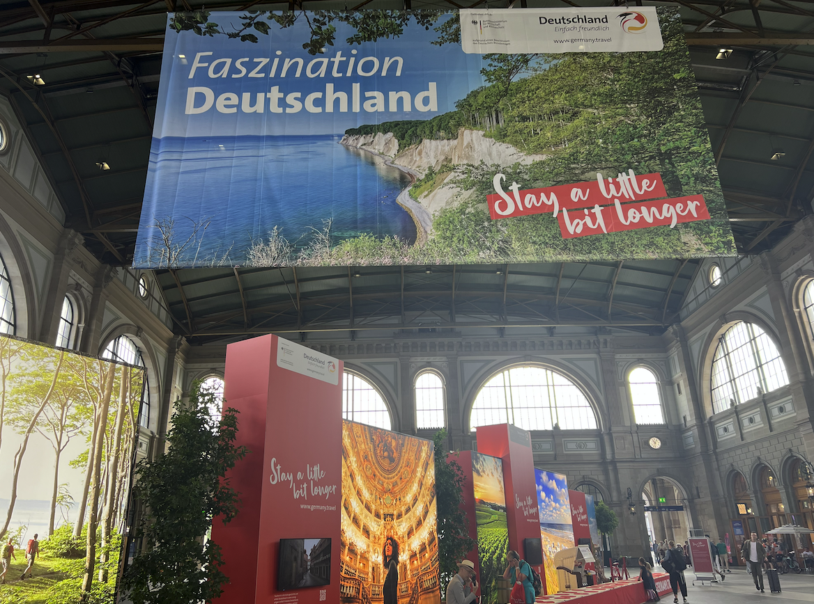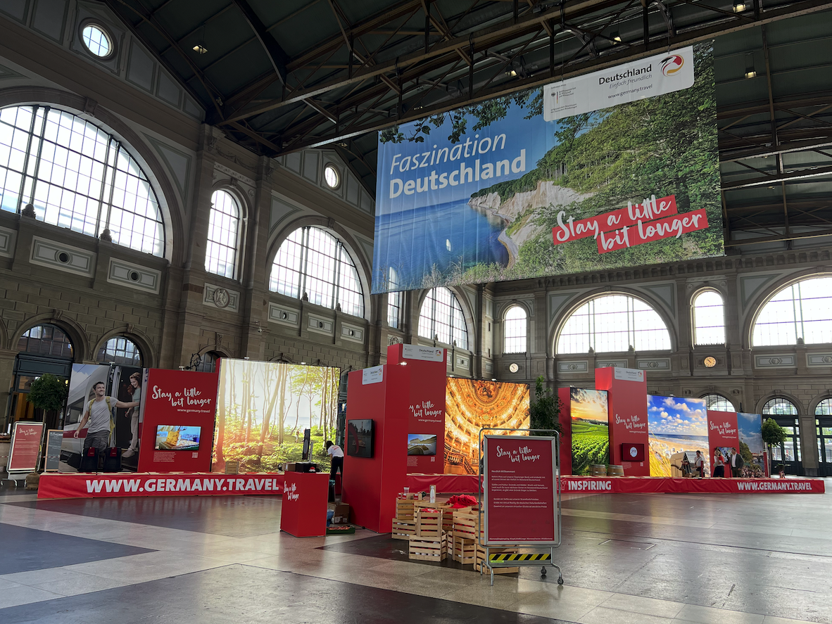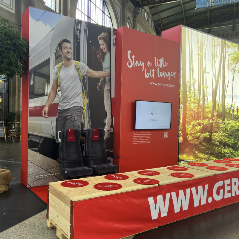 Mit «Stay a little bit longer» lud die Deutsche Zentrale für Tourismus zur längsten Bank im Hauptbahnhof Zürich.