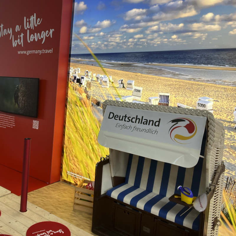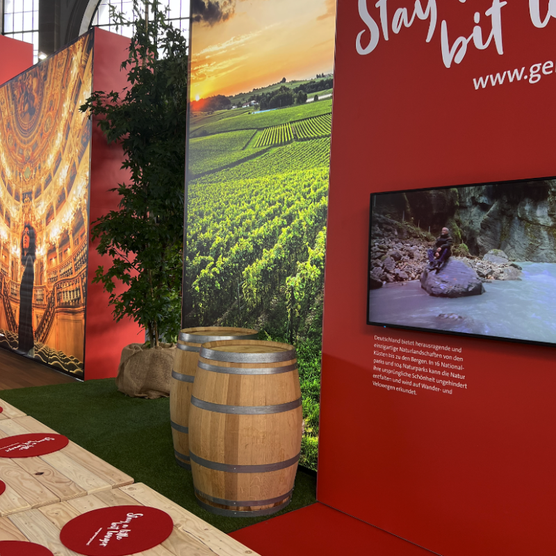 Als thematischer Leitfaden diente unser 5-Sinne-Framework, das Besuchende auf eine sinnliche Entdeckungsreise mitnahm – olfaktorisch, taktil und akustisch. Um die Vielfalt des Reiselandes Deutschland erlebbar zu machen, setzten wir nicht nur auf eindrucksvolle Bilder der Regionen.