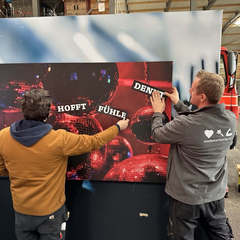 Zentrales Element ist die beliebte Fotoaktivierung, die dieses Jahr um ein interaktives Game erweitert wurde: In Anlehnung an die bekannte «Kühlschrankpoesie» stellen die Besuchenden mit Magnetwörtern innerhalb von 60 Sekunden eine eigene Grussbotschaft zusammen – direkt auf der Fotowand. Danach wird das Foto ausgelöst und mit der persönlichen Message als Erinnerung mitgegeben.