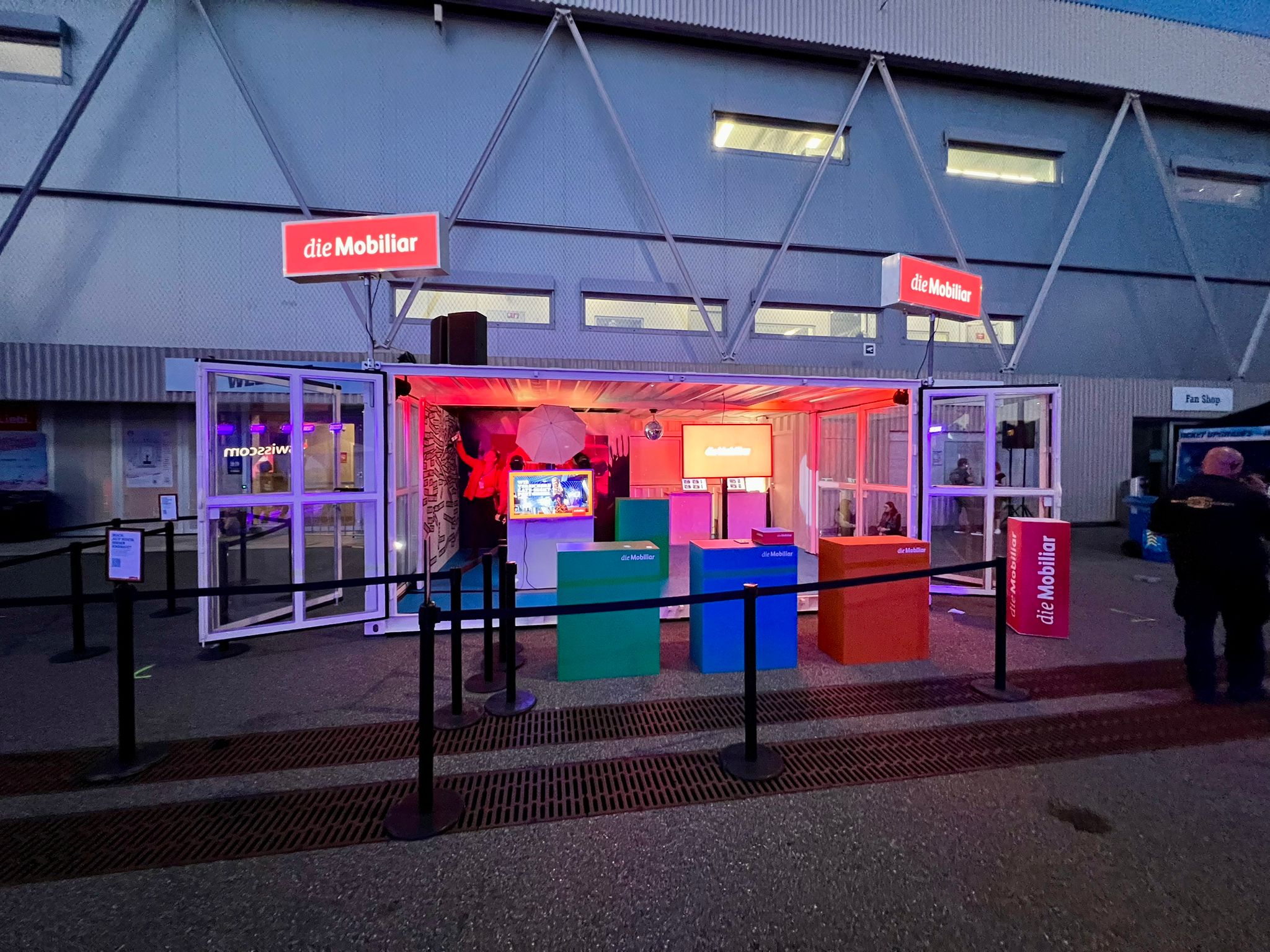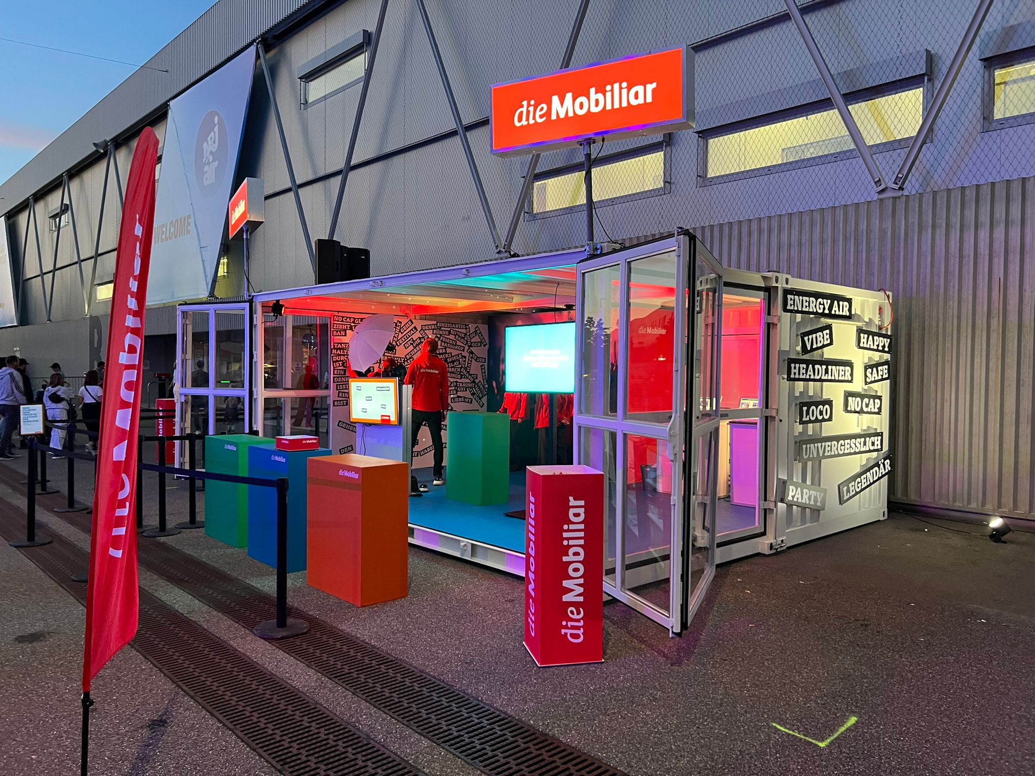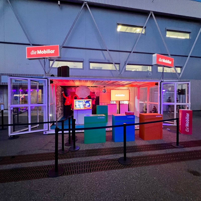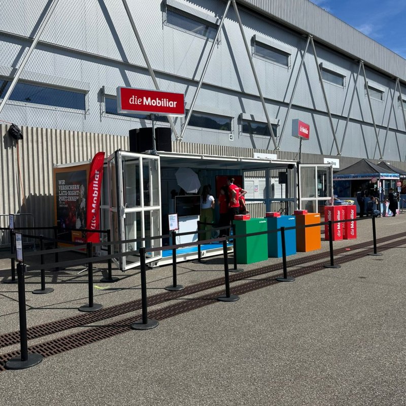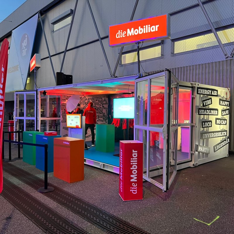 Bei Energy Air in der Stockhorn Arena Thun präsentierte sich die Mobiliar mit einem Container-Auftritt. Dieser bietet eine ideale Fläche für Gamification-Erlebnisse. Dank der flexiblen Lösung kann die Aktivierung nun wetterunabhängig auch im Aussenbereich stattfinden. Die Container erscheinen dabei im passenden Mobiliar-Branding und sorgen für einen starken Auftritt.