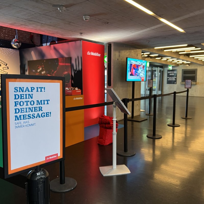 Der Claim «Safe, was immer kommt.» diente als inhaltlicher Anker und wurde als emotionale Essenz herausgepickt und erlebbar gemacht. So entsteht ein direkter Link zur übergeordneten Markenbotschaft – neu interpretiert für den physischen Raum. Die Aktivierung schliesst somit nahtlos an die Kampagne an und verlängert sie authentisch in den Live-Bereich.