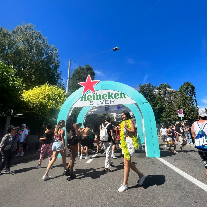 Der Sprühbogen von Heineken Silver sorgte an der Streetparade 2022 in Zürich und am Openair Gampel im Wallis für freudige Erfrischung.