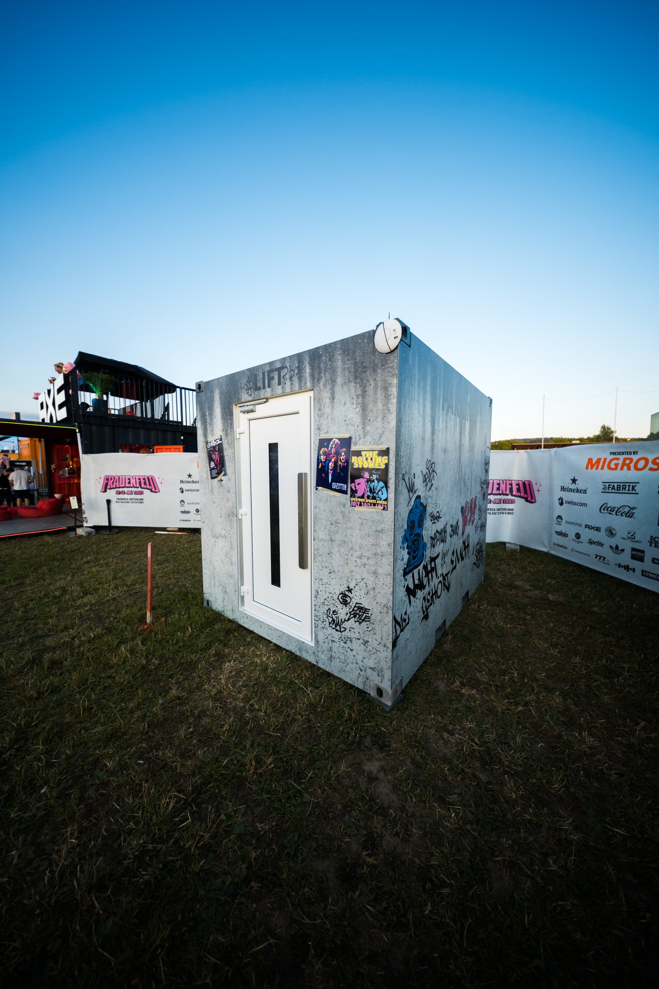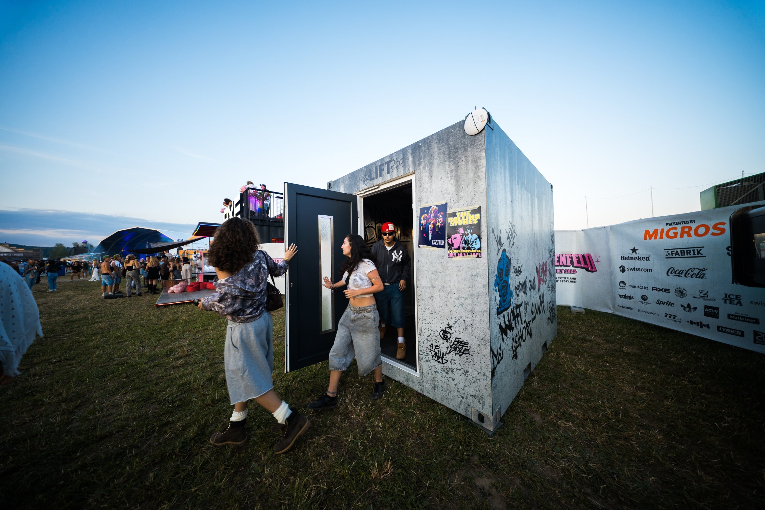 Für Jägermeister durften wir einen einzigartigen Container gestalten – im authentischen Used-Look und mit einer Eingangstür, die in einen Innenraum führt, der wie ein Aufzug inszeniert ist. Im Inneren konnten die Besucher aus sechs verschiedenen Knöpfen wählen, von denen jeder eine eigene Musikrichtung aktivierte. Nach dem Drücken des Knopfes senkte sich das Rolltor, und die Party konnte beginnen! Diese überraschende und interaktive Aktivierung begeisterte nicht nur vor Ort, sondern vermittelte dank ihres „instagrammable“ Charakters auch eine starke Markenbotschaft, kreativ und unkonventionell.