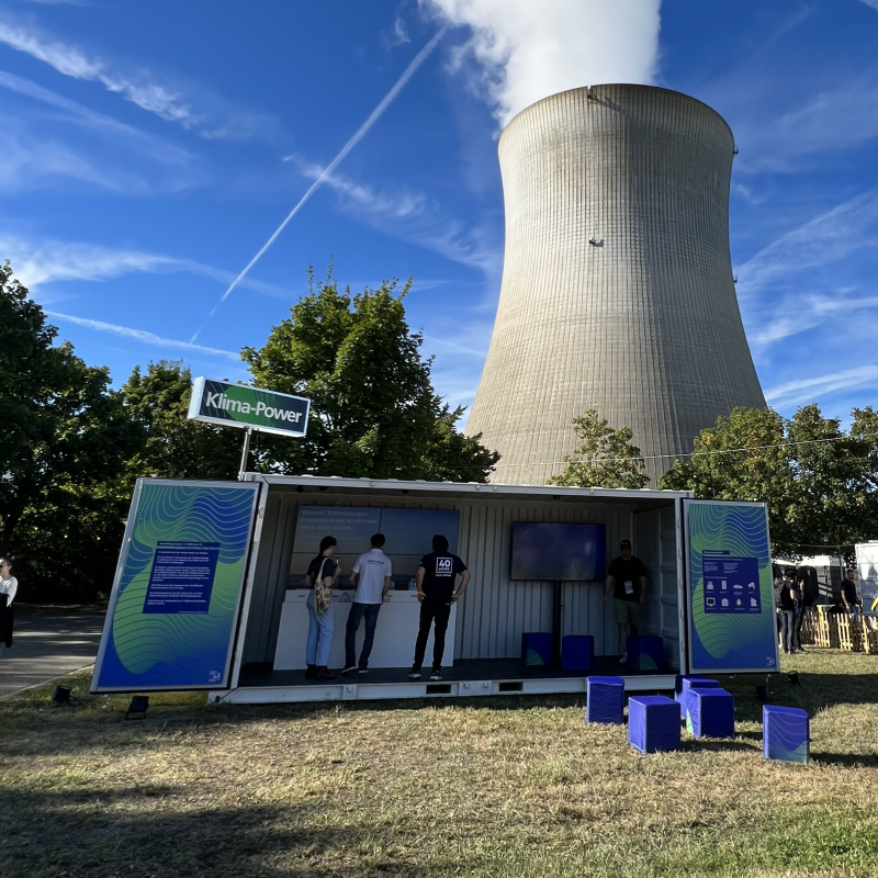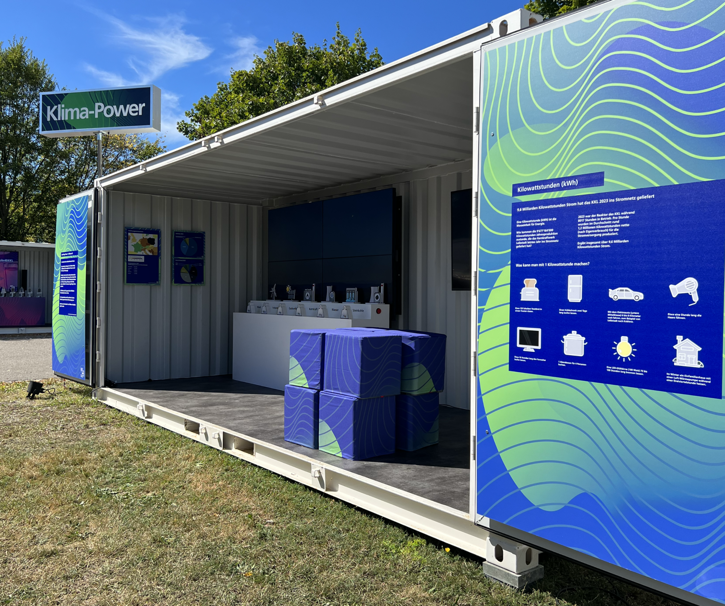 In dieser Station wurde die Kraft der Energietechnologie spürbar. «Mit dem stärksten Motor der Schweiz (1,7 Millionen PS) wird in Leibstad klimafreundlich Energie produziert», so die Botschaft dieses Stand-Elements. BesucherInnen konnten anhand eines spielerischen Ansatzes verstehen, wie die verschiedenen Kraftwerkstypen Enfluss auf den CO-Ausstoss nehmen.