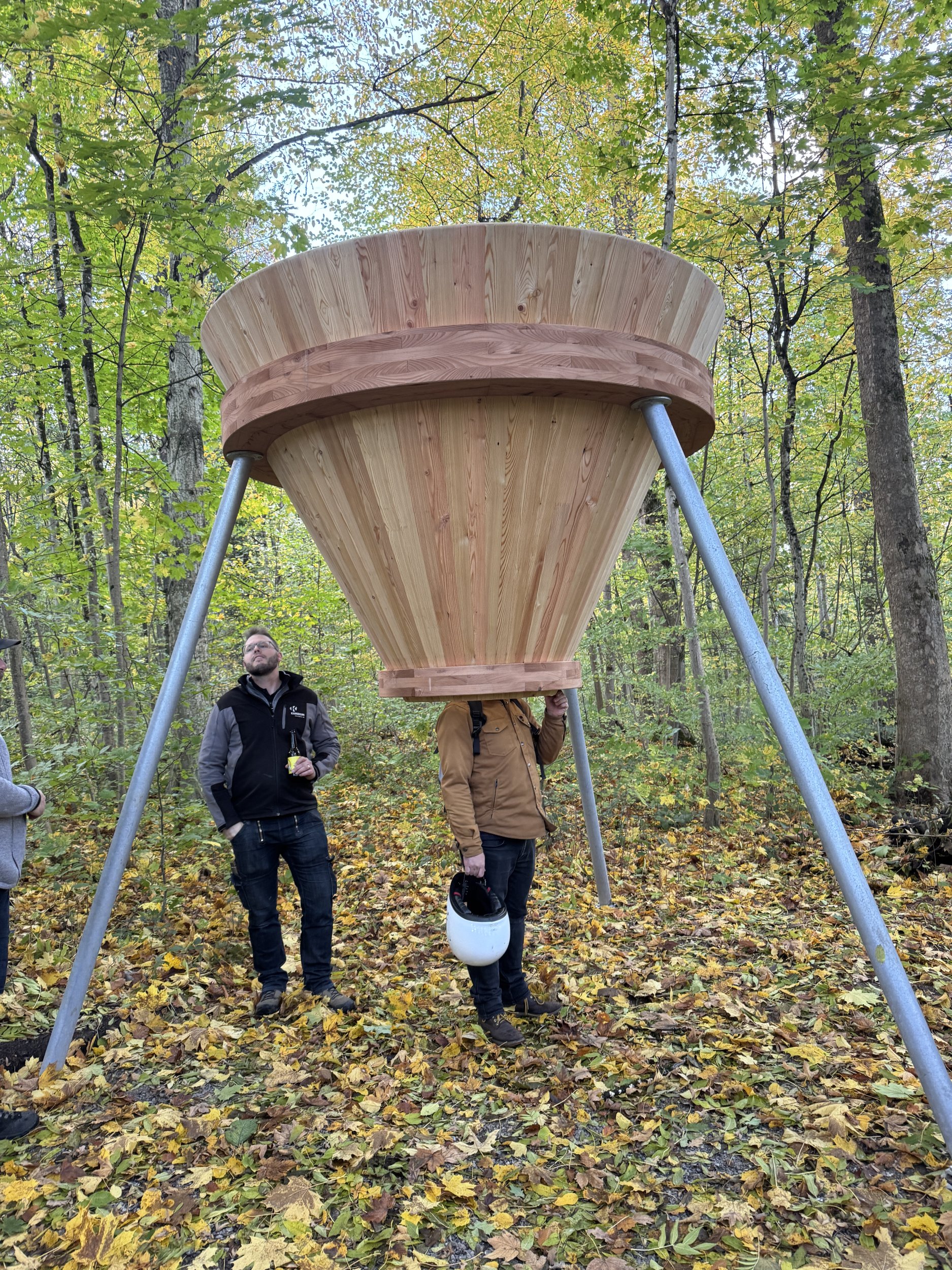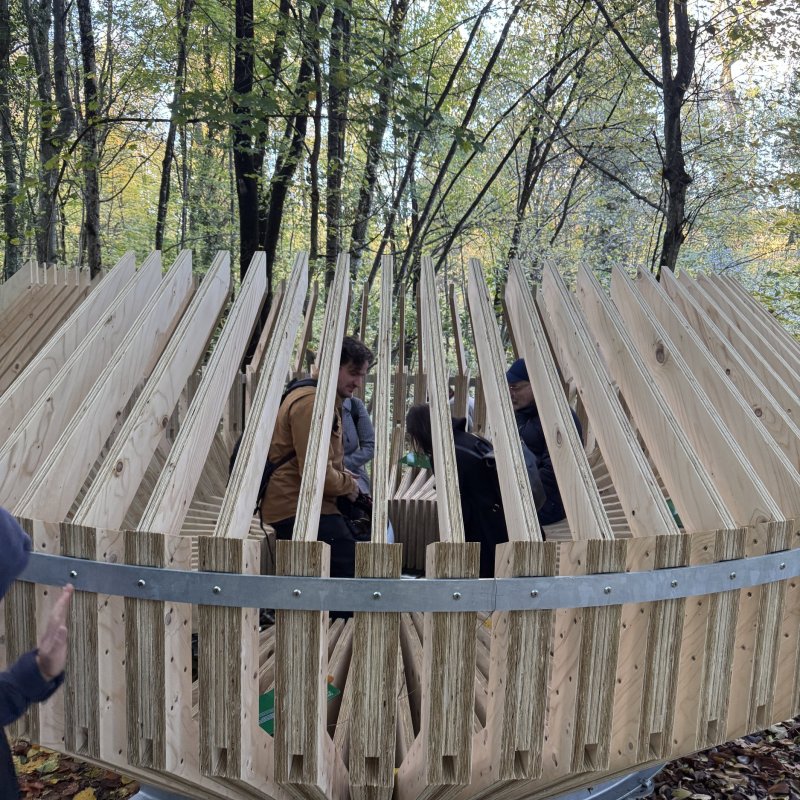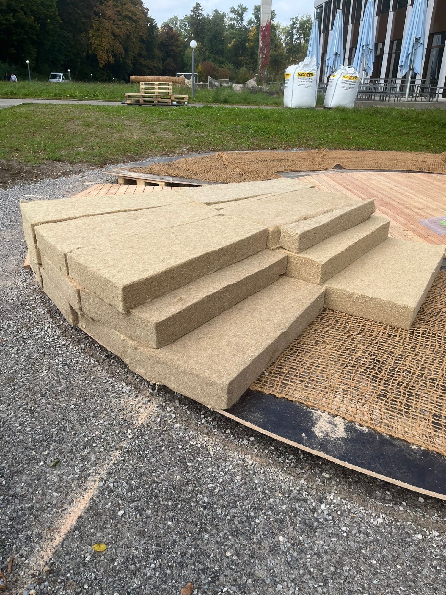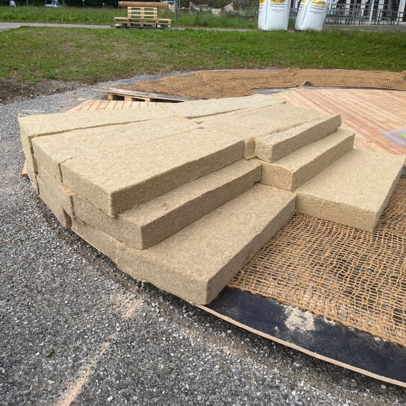 Verarbeitet wurden robuste, nachhaltige Materialien wie Hanf-Isoliermatten, Siebdruckplatten und Europaletten. Mit viel Engagement war unser Team einen ganzen Tag vor Ort im Einsatz.