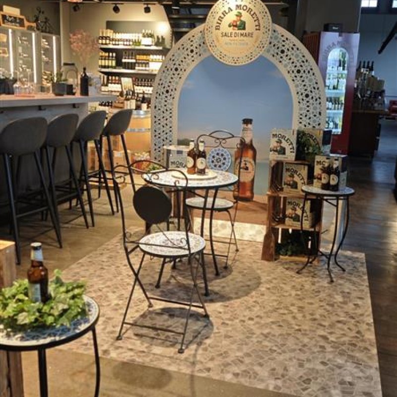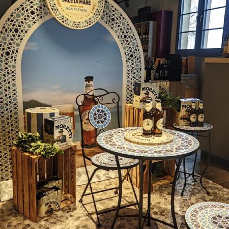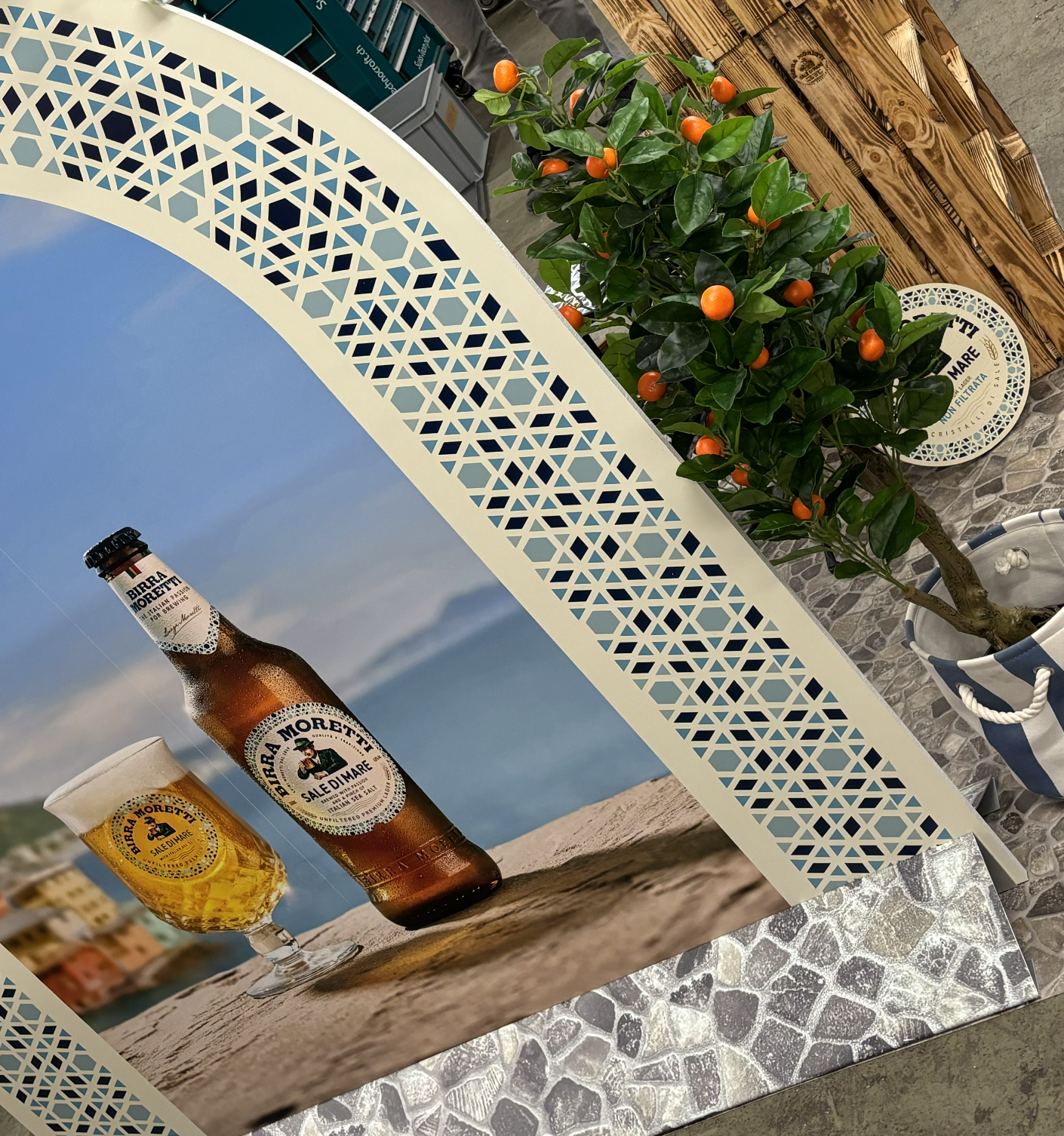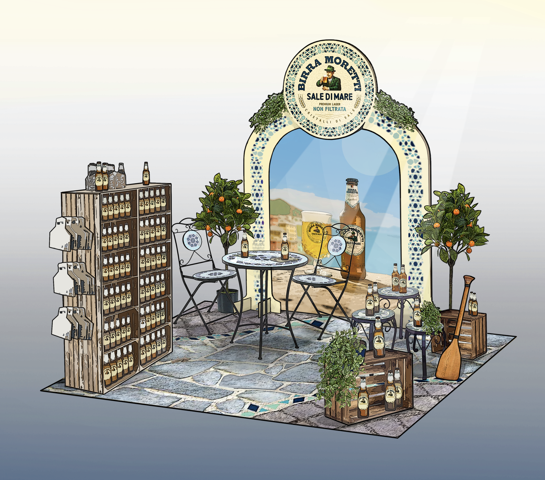Ein erfrischender POS Corner für Sale di Mare, das neue Bier von Birra Moretti.