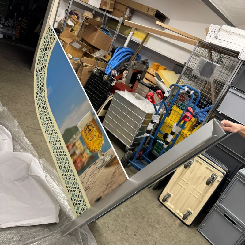 Test Aufbau und Palettisierung des Birra Moretti Corners