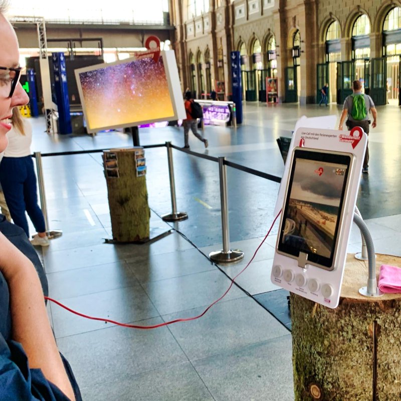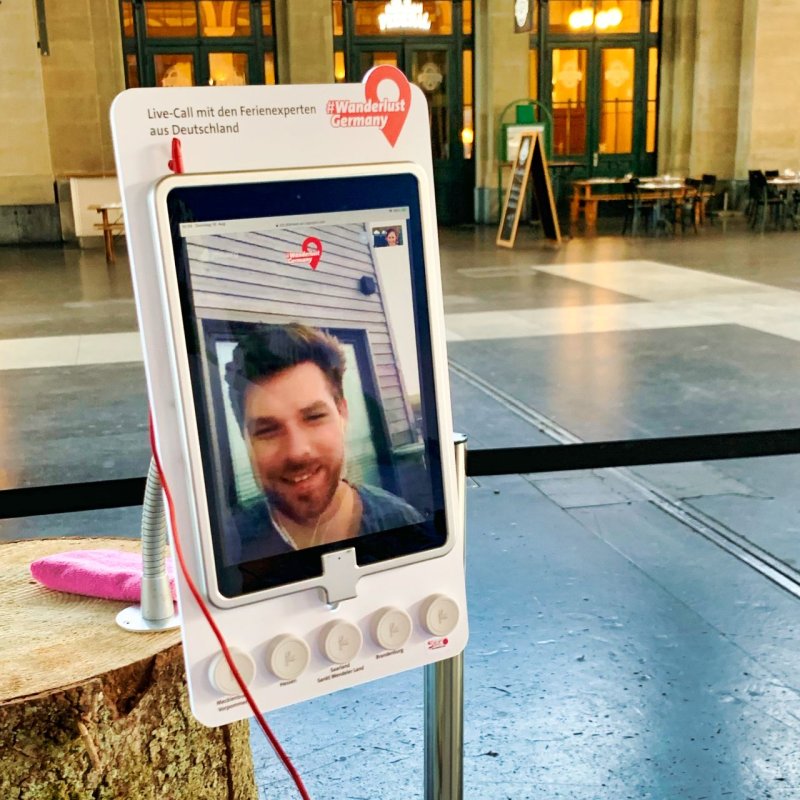 Die Idee zur Videocall-Station ist ein Corona-Produkt. Per Knopfdruck baut sich automatisch eine Verbindung zu den Feriendestinationen auf. Trotz Distanz kann so Nähe und Authentizität geschaffen werden. Die Interessierten kriegen Infos aus erster Hand und auch gleich ein freundliches kompetentes Gesicht zu sehen. Das kommt gut an.