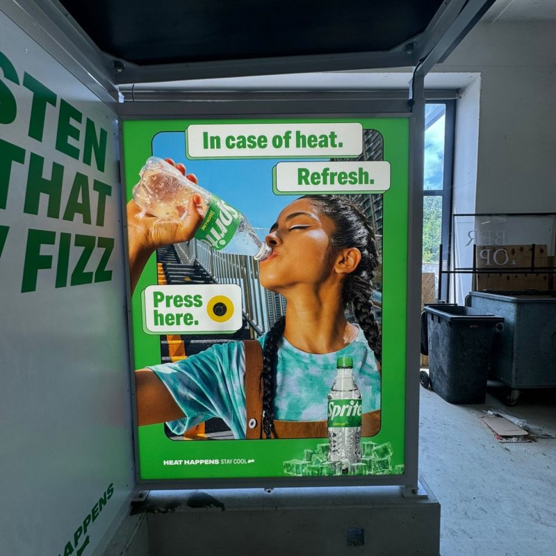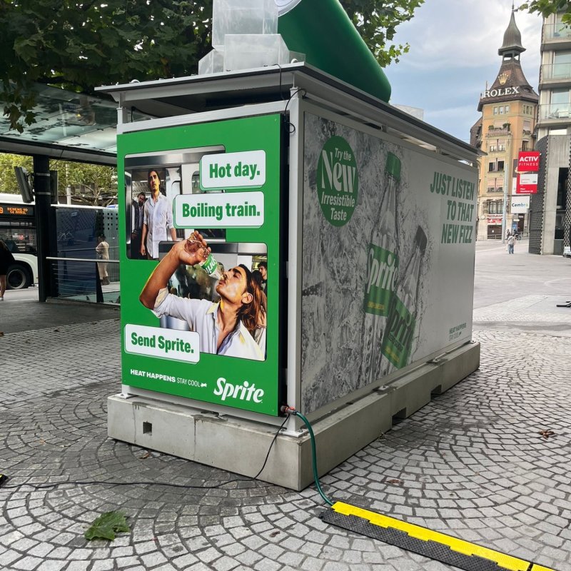 Auf den ersten Blick wirkt die Sprite-Busstation wie eine ganz normale Haltestelle. Doch beim Näherkommen wird klar: Hier hält kein Bus – stattdessen gibt es eine erfrischende Überraschung an heissen Sommertagen. Diese clevere, versteckte Aktivierung wurde für Festivals und Innenstädte entwickelt, um PassantInnen und Festivalbesuchenden per Knopfdruck einen kühlen Sprühduschen-Moment zu schenken. Die sanfte Erfrischung wurde begeistert aufgenommen und harmonierte mit dem Sampling der neuen Sprite Zero Sorte.