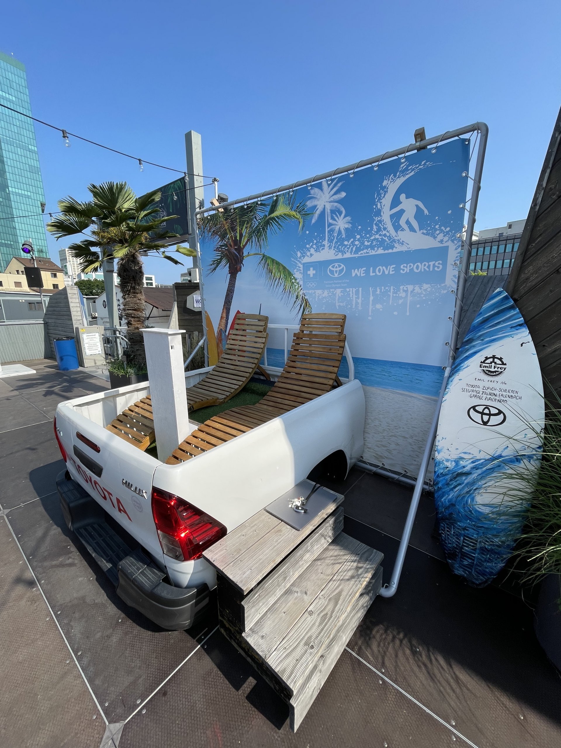 Die kompakte Selfclick-Box steht bis Mitte Oktober bei der Urbansurf-Welle bei der Hardbrücke und kommt danach als mobile Aktivierung an verschiedenen Events von Toyota zum Einsatz.