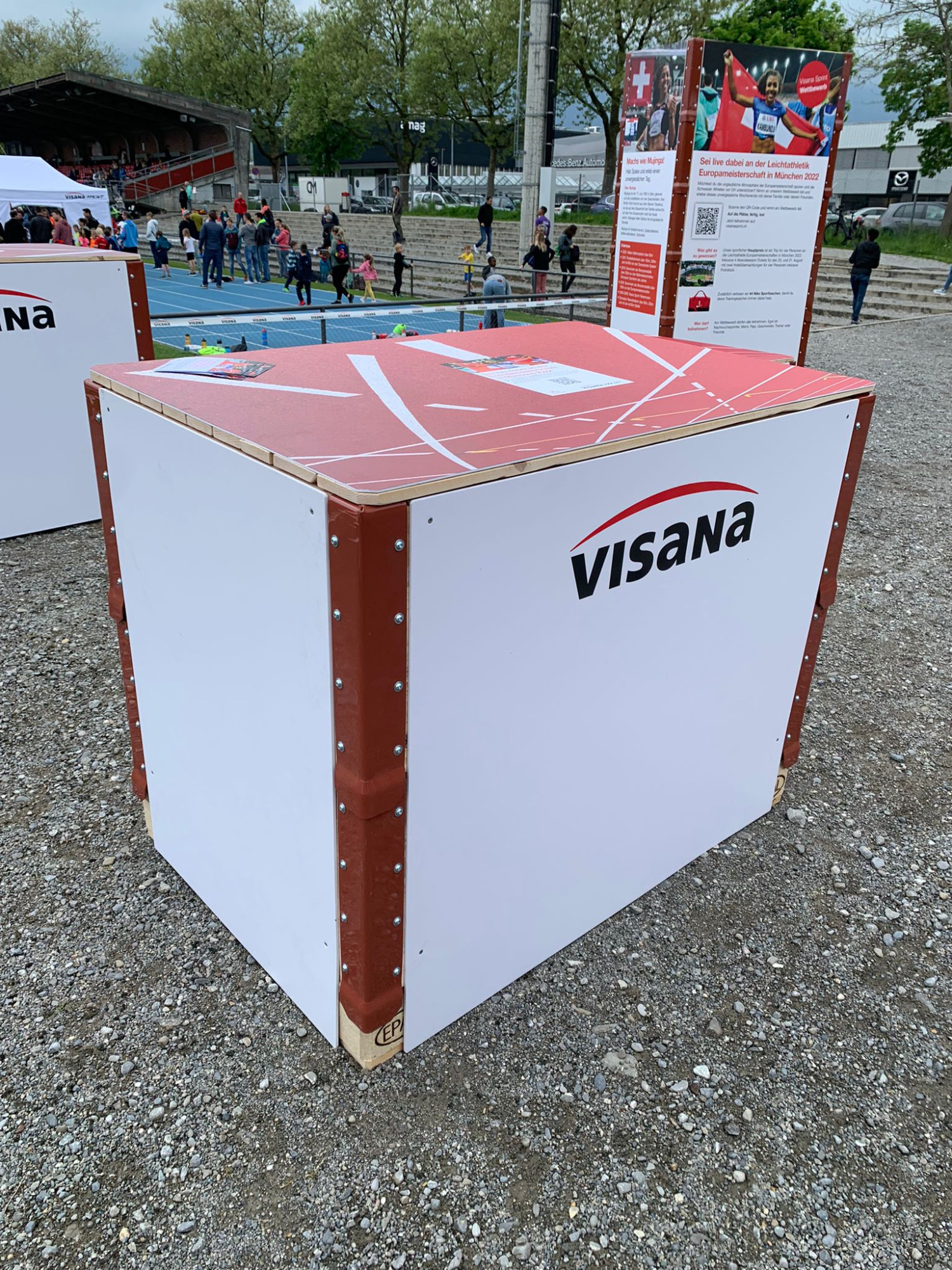 Der Auftritt der Visana als Hauptsonsor der schweizweiten Sprintnachwuchs-Rennen wurde massgeblich von den Farben Weiss und Rot dominiert. Aber auch von der starken Leistung von Sprinterin Mujinga Kambundji, welche als Botschafterin die Sprints immer wieder besuchte. Durch ein Game, das wir inhouse programmierten, konnten sich die Kids mit Mujinga auseinandersetzen, indem sie versuchten ihren Rekord über 100 Meter zu erbuzzern. Das Spiel fand bei Klein und Gross regen Anklang.