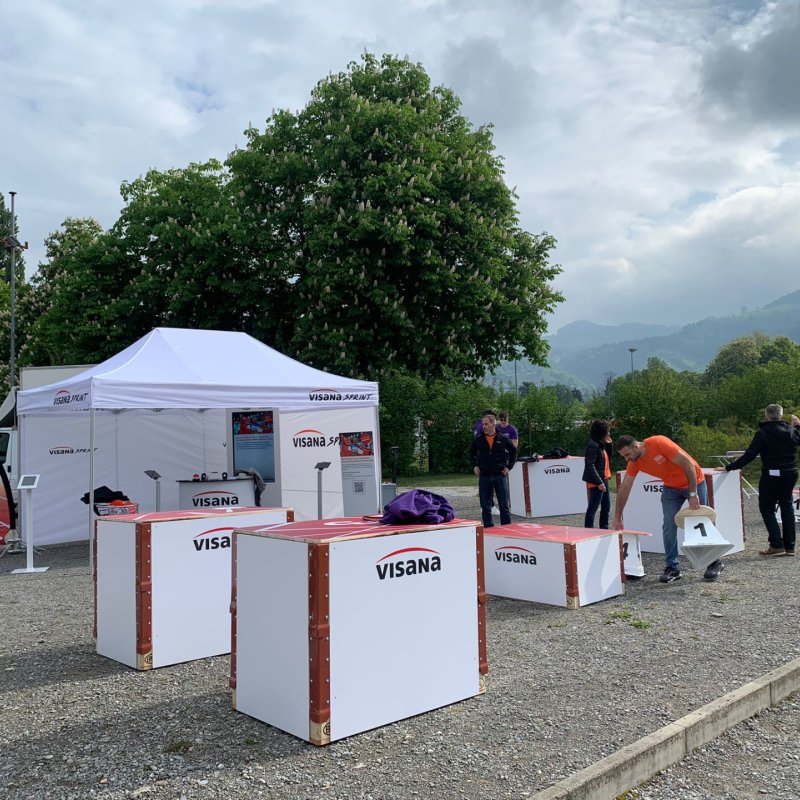 Die Visana-Sprint-Nachwuchsrennen werden jährlich an 27 Orten schweizweit ausgetragen. Mit der Visana Piazza wurde die Roadshow zum Erlebnis auch neben des Wettkampfs.