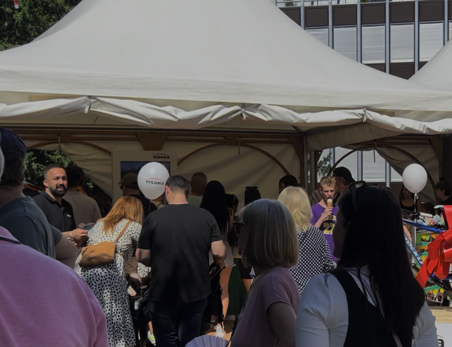 Visana wünschte sich einen familienfreundlichen und interaktiven Auftritt, welcher im Gewusel des Festes Erholungs- und Rückzugsräume bieten sollte.