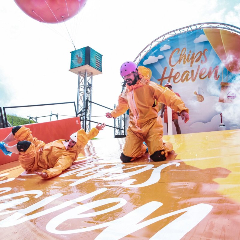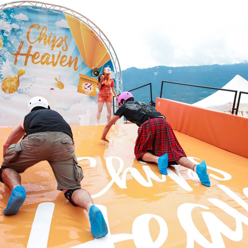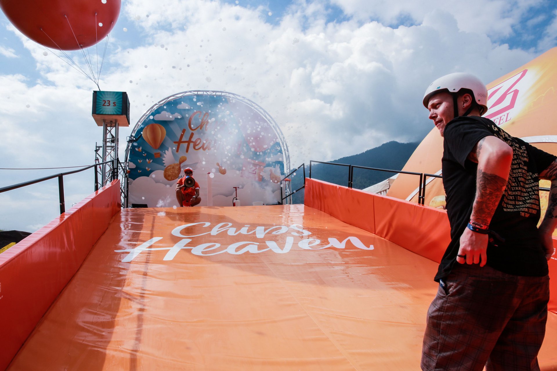 «Wir sind glücklich mit dem «Chips Heaven». Unsere Vorgaben – Challenge, Spass und Visibilität – wurden vollends erfüllt», so Adrian Müller, Leiter Live-Marketing und Sponsoring bei Zweifel. Besonders die Umsetzungsphase sei spannend und intensiv gewesen, sagt Jann Falett, Live-Marketing und Sponsoring Manager bei Zweifel, der als einer der ersten die Rampe hoch ist.